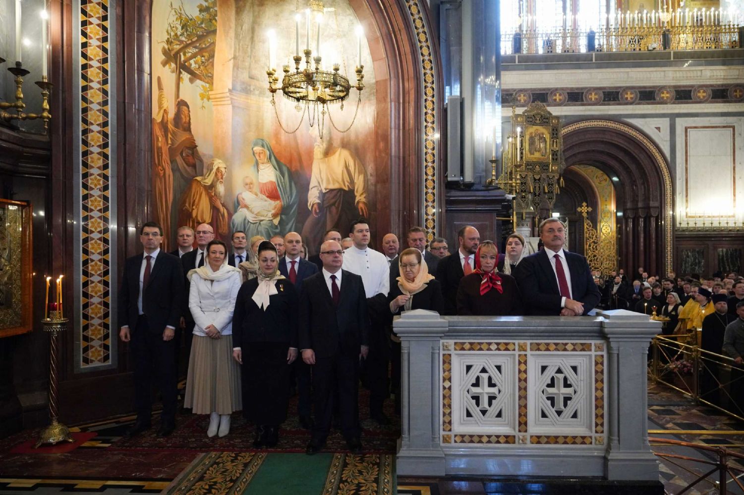 Богослужебные песнопения исполнили хор Храма Христа Спасителя (регент — И.Б. Толкачев), хор духовенства Московской митрополии под управлением священника Сергия Голева и мужской хор «Всехсвятский» (г. Минск) под управлением Дмитрия Токмакова.