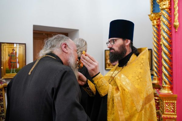 Далее в домовом храме Православного центра в честь преподобномученицы великой княгини Елисаветы был отслужен благодарственный молебен, который совершил заместитель руководителя отдела религиозного образования и катехизации Йошкар-Олинской епархии, ответственный за повышение квалификации священнослужителей иерей Иоанн Кристев.