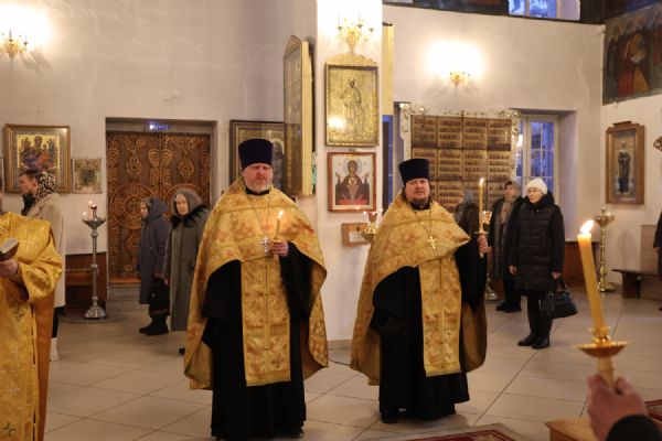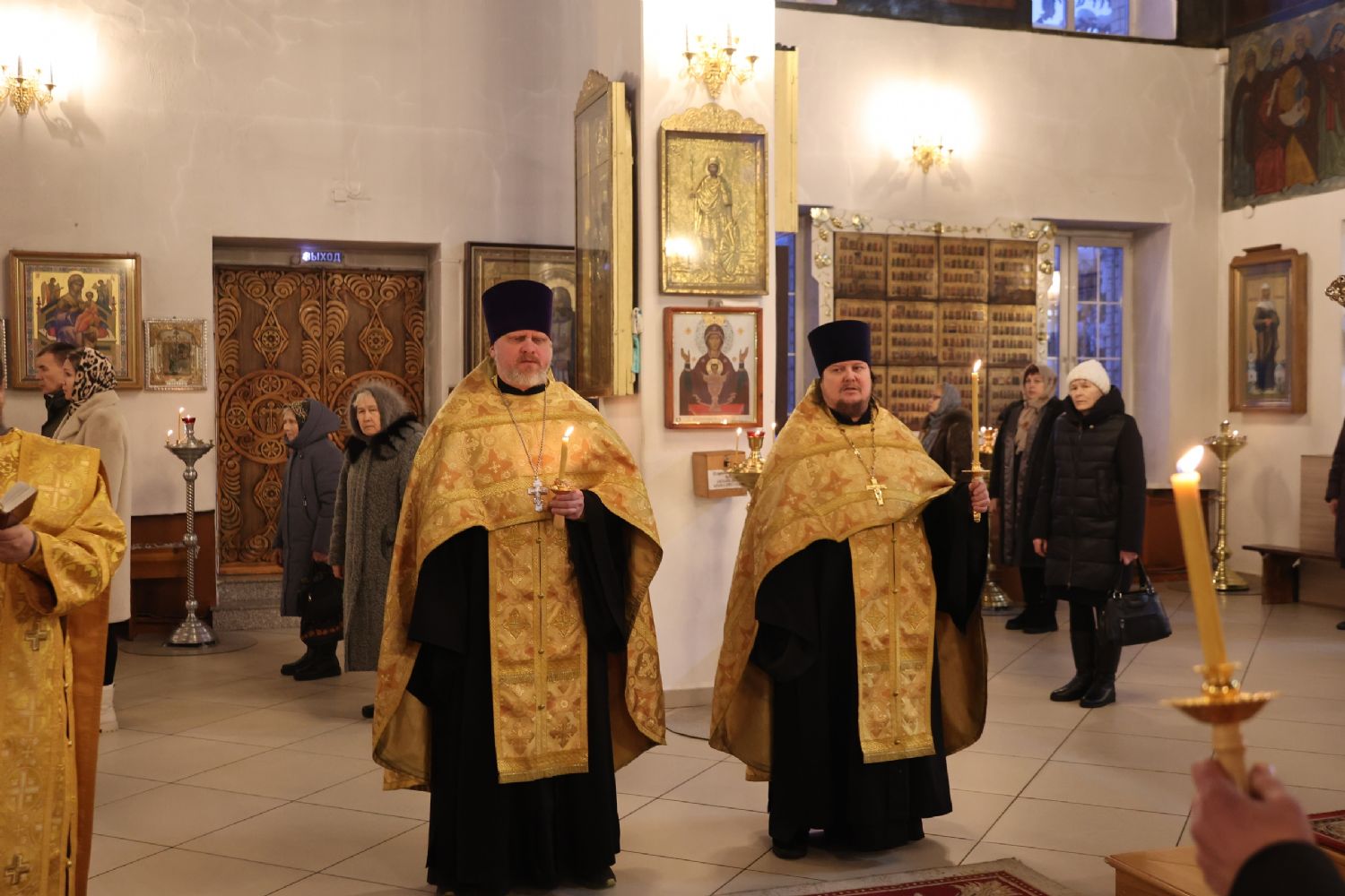 Его Преосвященству сослужили клирики кафедрального собора иерей Николай Аникин, иеромонах Александр (Чеборов), иерей Сергий Першаков, иеромонах Питирим (Мосякин), диакон Иоанн Захаров, диакон Александр Викторов. Песнопения всенощного бдения исполнял архиерейский хор под управлением Любови Михеевой, за Литургией пел народный хор под управлением Евгения Чигарова.