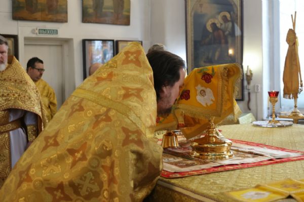 В завершение Литургии духовенством было совершено славление пред иконой праздника.
