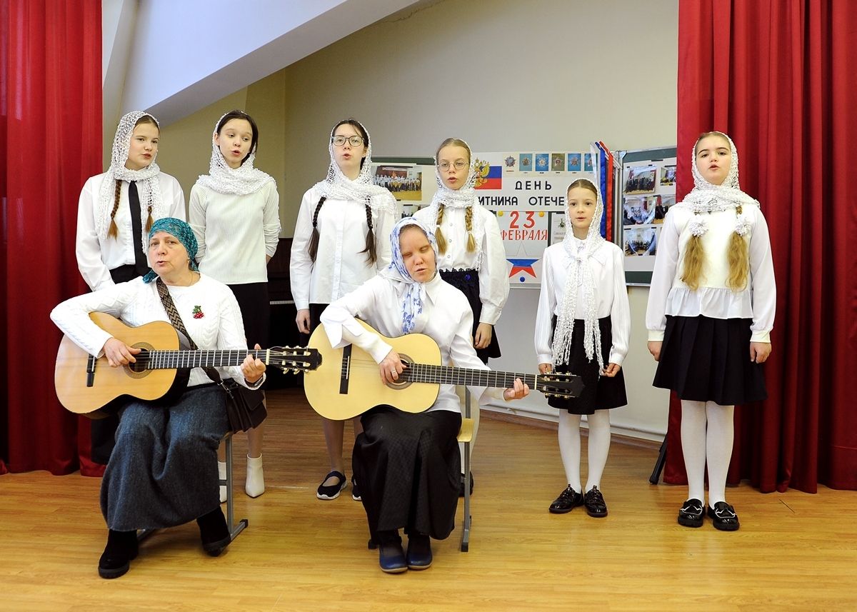 Воспитанники воскресной школы проникновенно исполняют военные песни, малыши задорно читают стихотворения. Большой интерес зрителей вызвала юмористическая сценка «Как родная мать меня в армию провожала». Особый трепет у присутствовавших вызвали стихотворение Светланы Лазорской «Мы с вами», посвященное участникам Специальной военной операции, песня «Душа России» в исполнении воспитаниц старшей группы. А гимн Йошкар-Олинской ракетной орденоносной дивизии вместе с детьми с удовольствием подхватили и почетные гости.