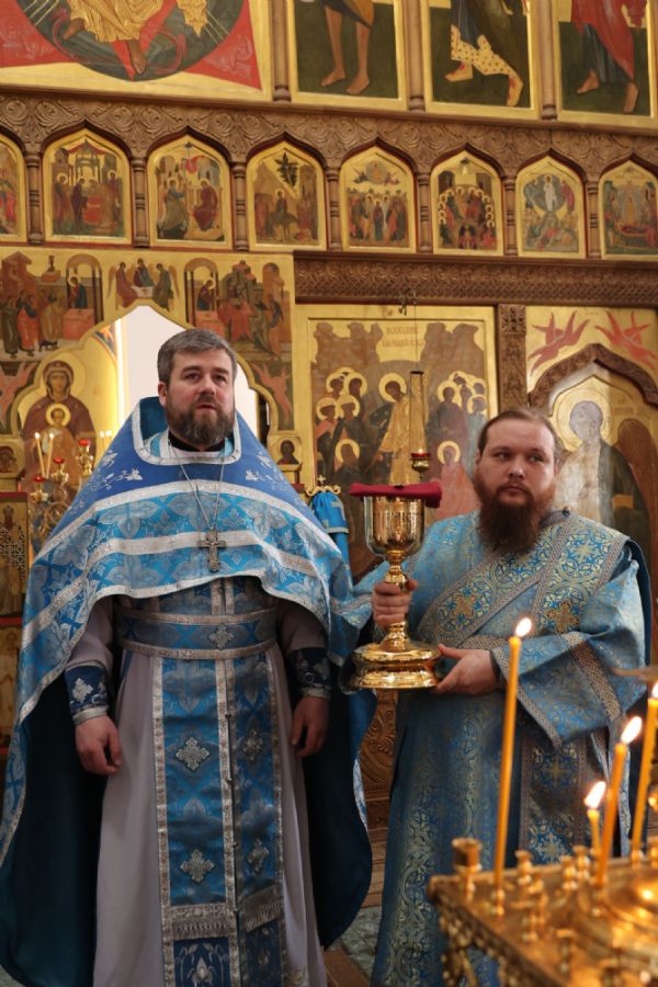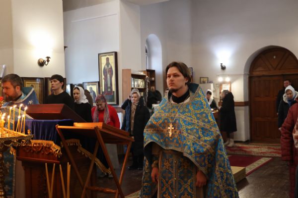 Его Преосвященству сослужили настоятель храма протоиерей Александр Михайлов, клирик храма Новомучеников и исповедников земли Русской г. Волжска иерей Андрей Легостаев, клирик храма святого праведного Иоанна Кронштадтского г. Волжска иерей Герман Михайлов и клирик Никольского кафедрального собора диакон Иоанн Захаров. Песнопения исполнял хор храма под управлением Ирины Канашиной.