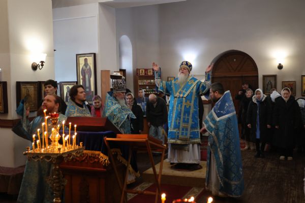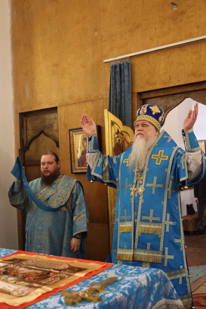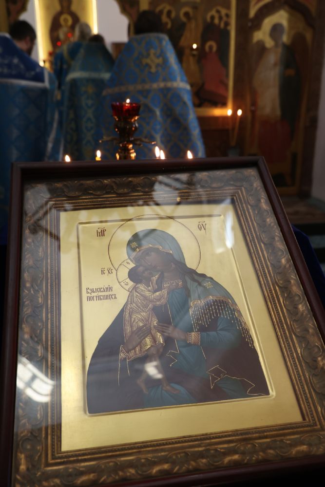 После богослужения епископ Феофан обратился к прихожанам с архипастырским словом, рассказав об истории иконы Пресвятой Богородицы «Взыскание погибших», о глубоком смысле, заложенном в название этого образа.