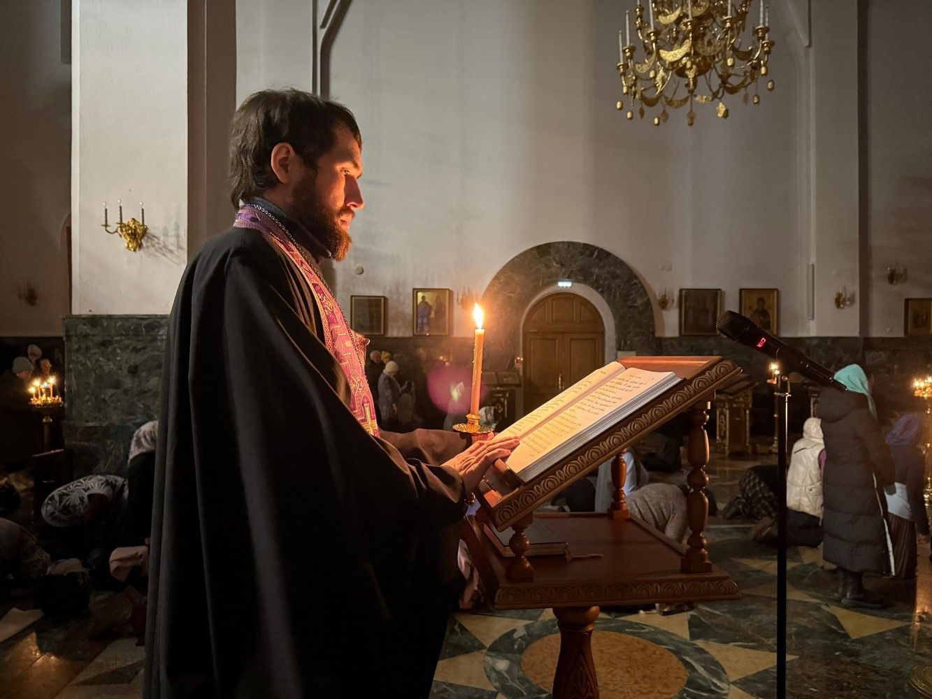 После молитв обычного начала и 69 псалма митрополит Иоанн в центре храма начал чтение Великого канона. Чтение продолжили клирики собора иереи Никифор Захаров, Евгений Самойлов, Александр Староверов и Иоанн Милютин.