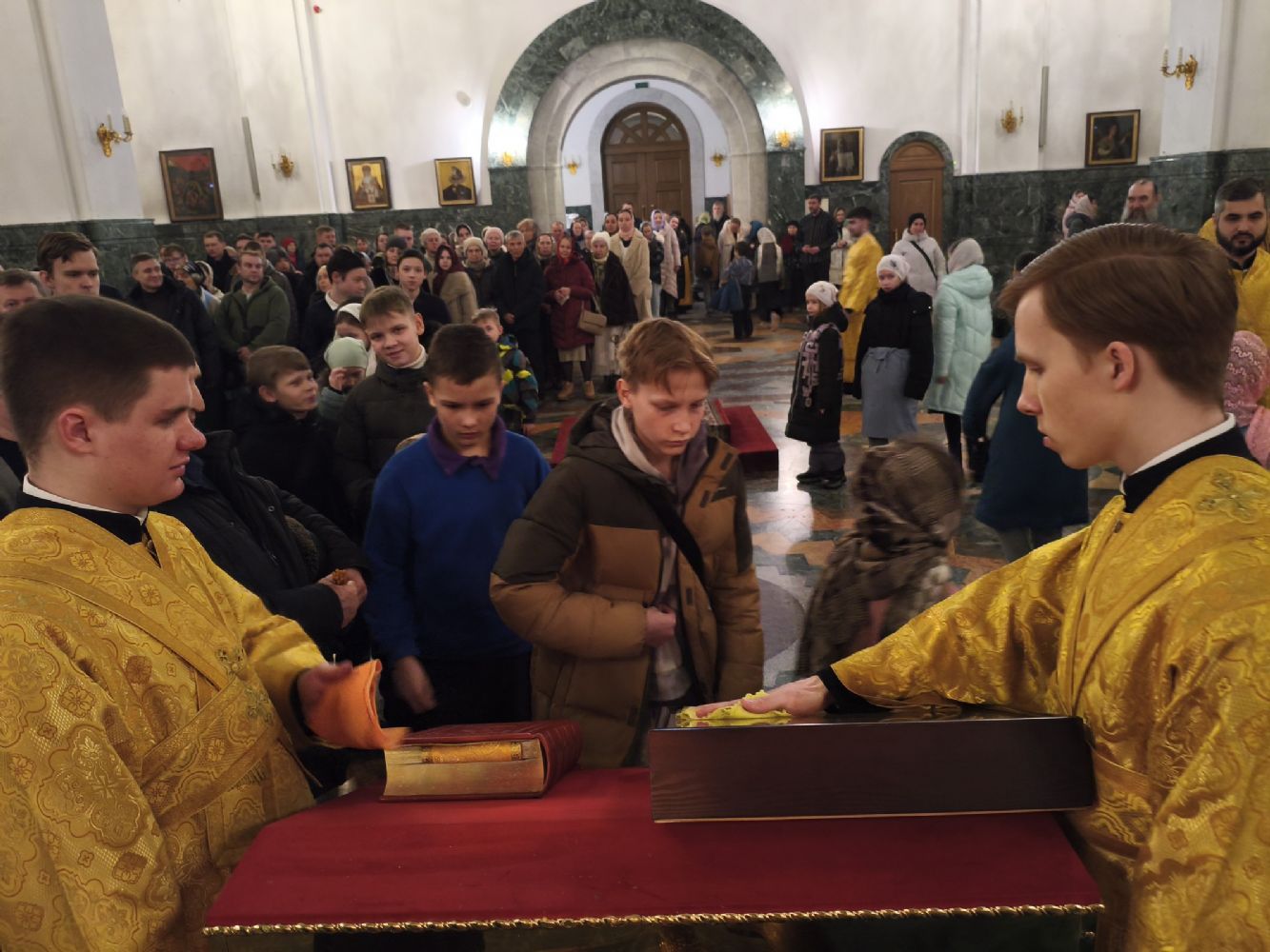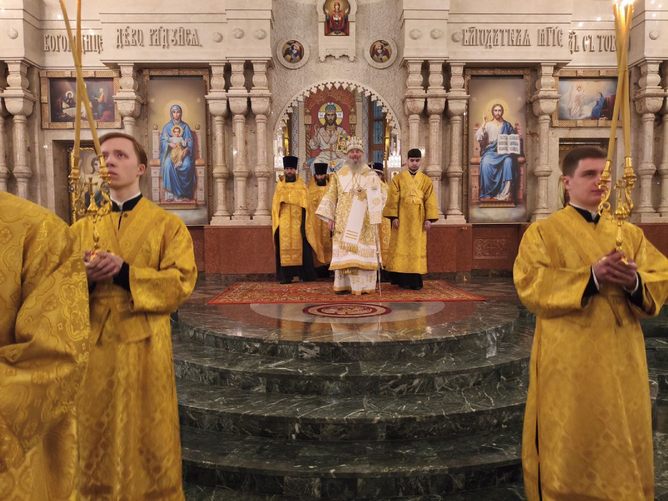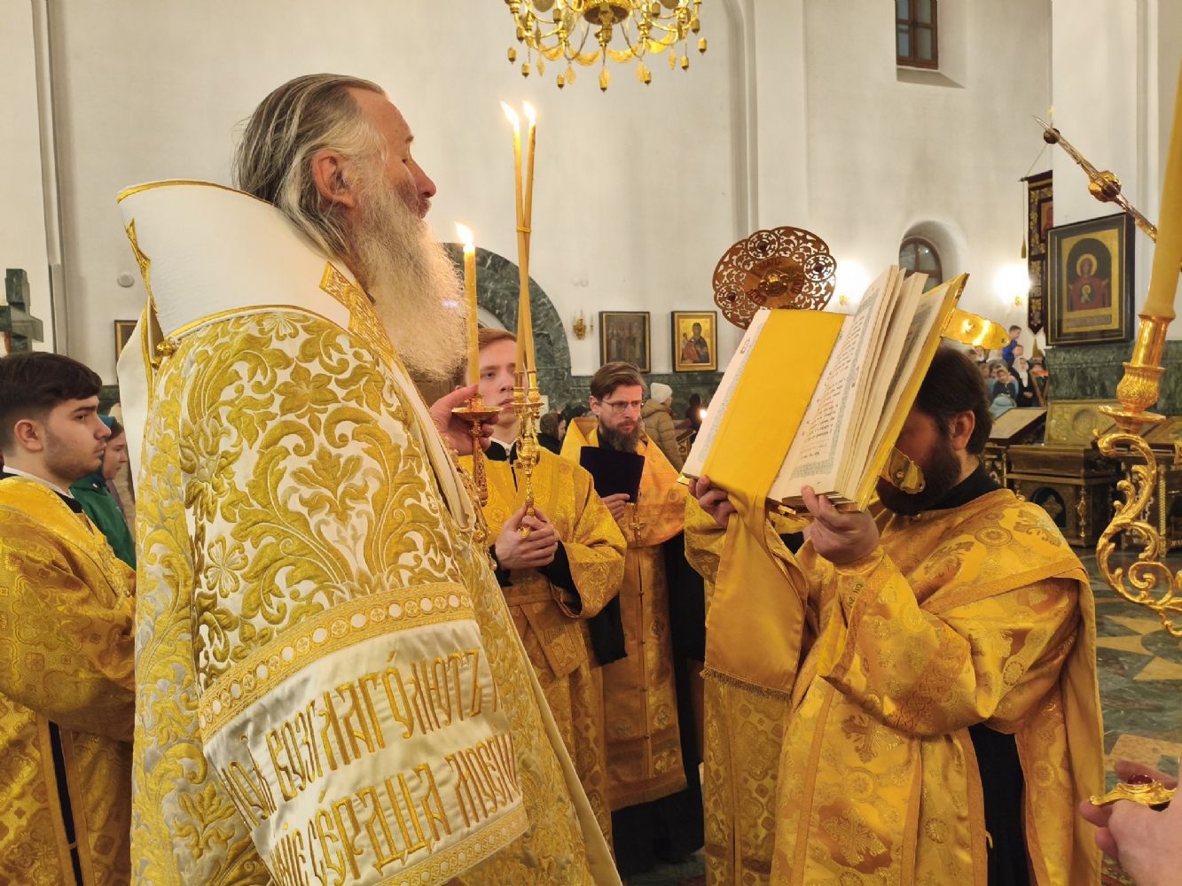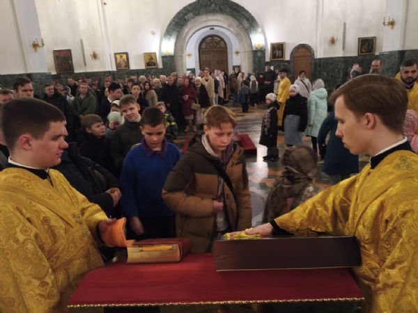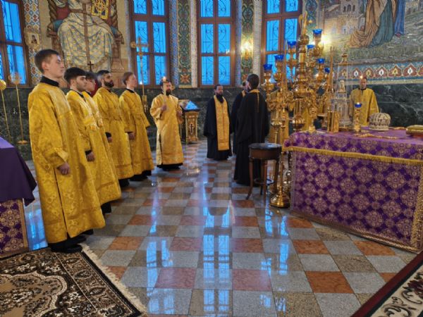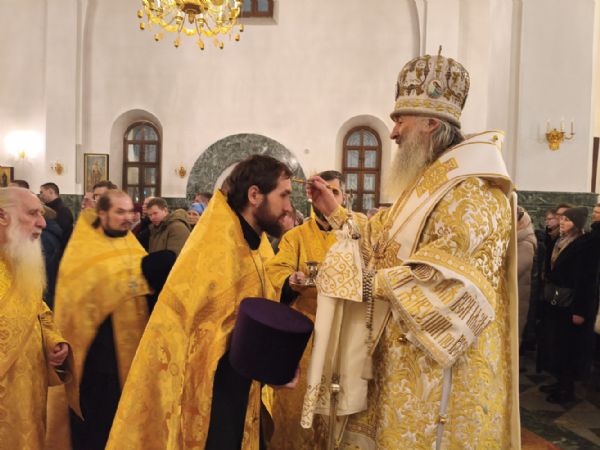 Владыке сослужили клирики собора иереи Никифор Захаров, Евгений Самойлов, Александр Староверов, Иоанн Милютин и диакон Артемий Бобоч, а также протодиакон Михаил Козловский. Песнопения исполняли старший и младший составы архиерейского хора «Благовест» под управлением регентов Татьяны Черновой и Надежды Поздеевой.