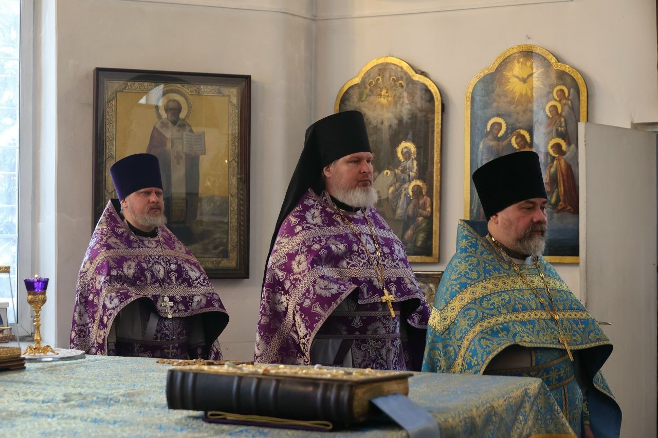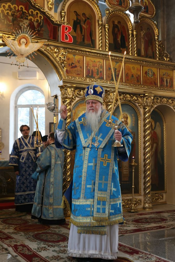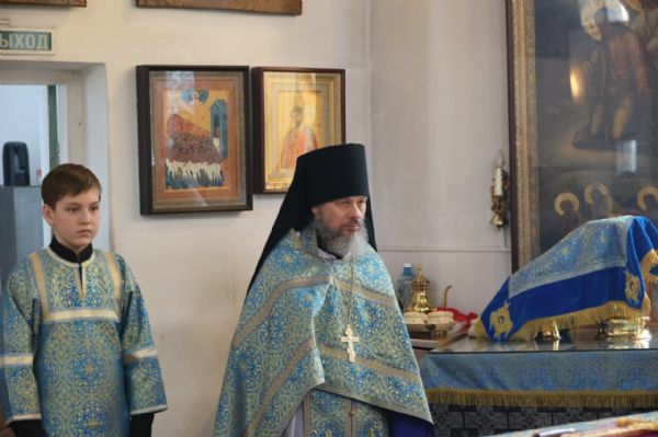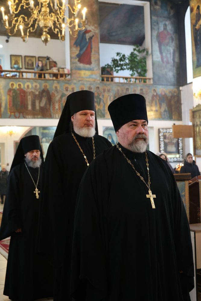 Его Преосвященству сослужили клирики кафедрального собора протоиерей Виталий Михеев, иерей Николай Аникин, иеромонах Александр (Чеборов), иерей Иоанн Лапшинский, иерей Сергий Першаков, иеромонах Питирим (Мосякин), диакон Иоанн Захаров и диакон Александр Викторов. Песнопения исполнял архиерейский хор под управлением регента Любови Михеевой.
