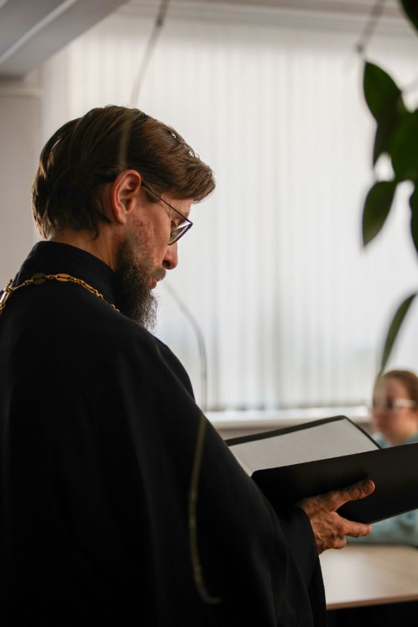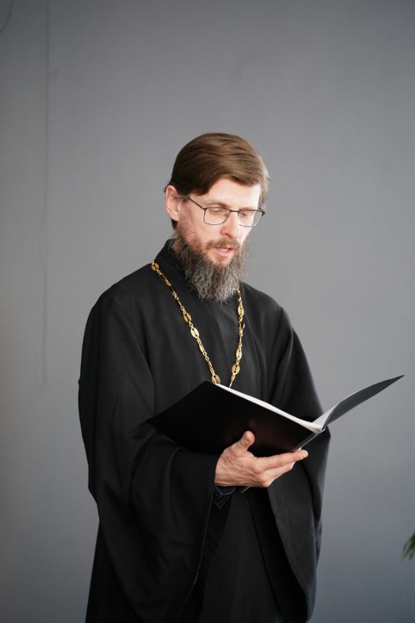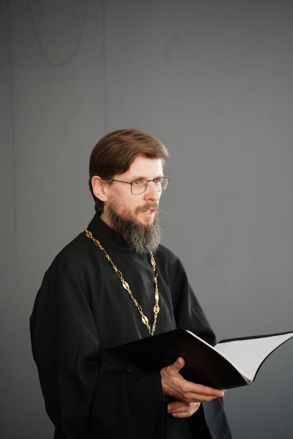 Иерей Евгений Самойлов, клирик Благовещенского кафедрального собора г. Йошкар-Олы, ответственный за книгораспространение и развитие библиотечной сети в Йошкар-Олинской епархии побеседовал с собравшимися на тему «Значение литературы в жизни человека. Влияние душеполезного чтения на образ христианской жизни».