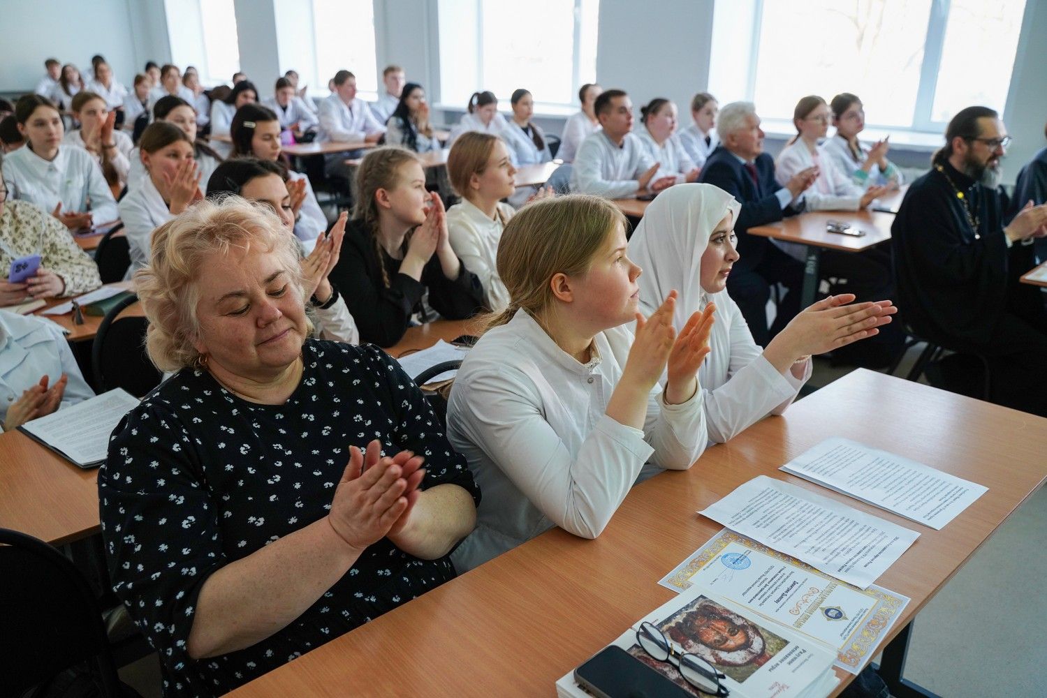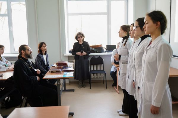 Собравшихся приветствовали директор медколледжа Леонид Викторович Рыжков и секретарь Йошкар-Олинского епархиального управления иерей Димитрий Дьяков, окормляющий данное учебное заведение.