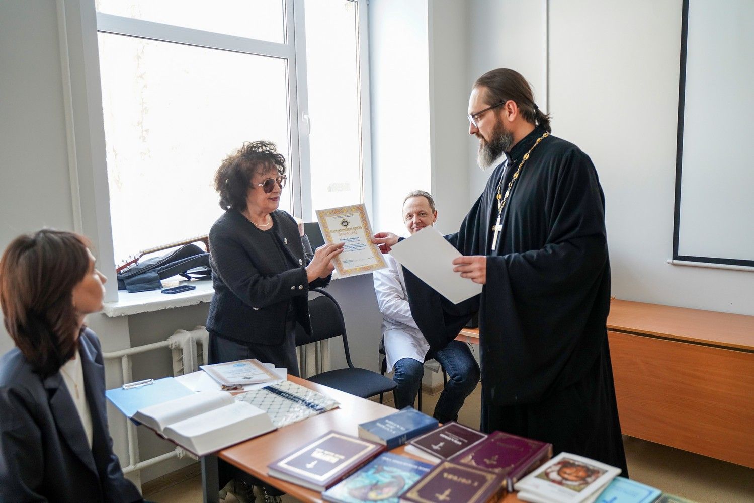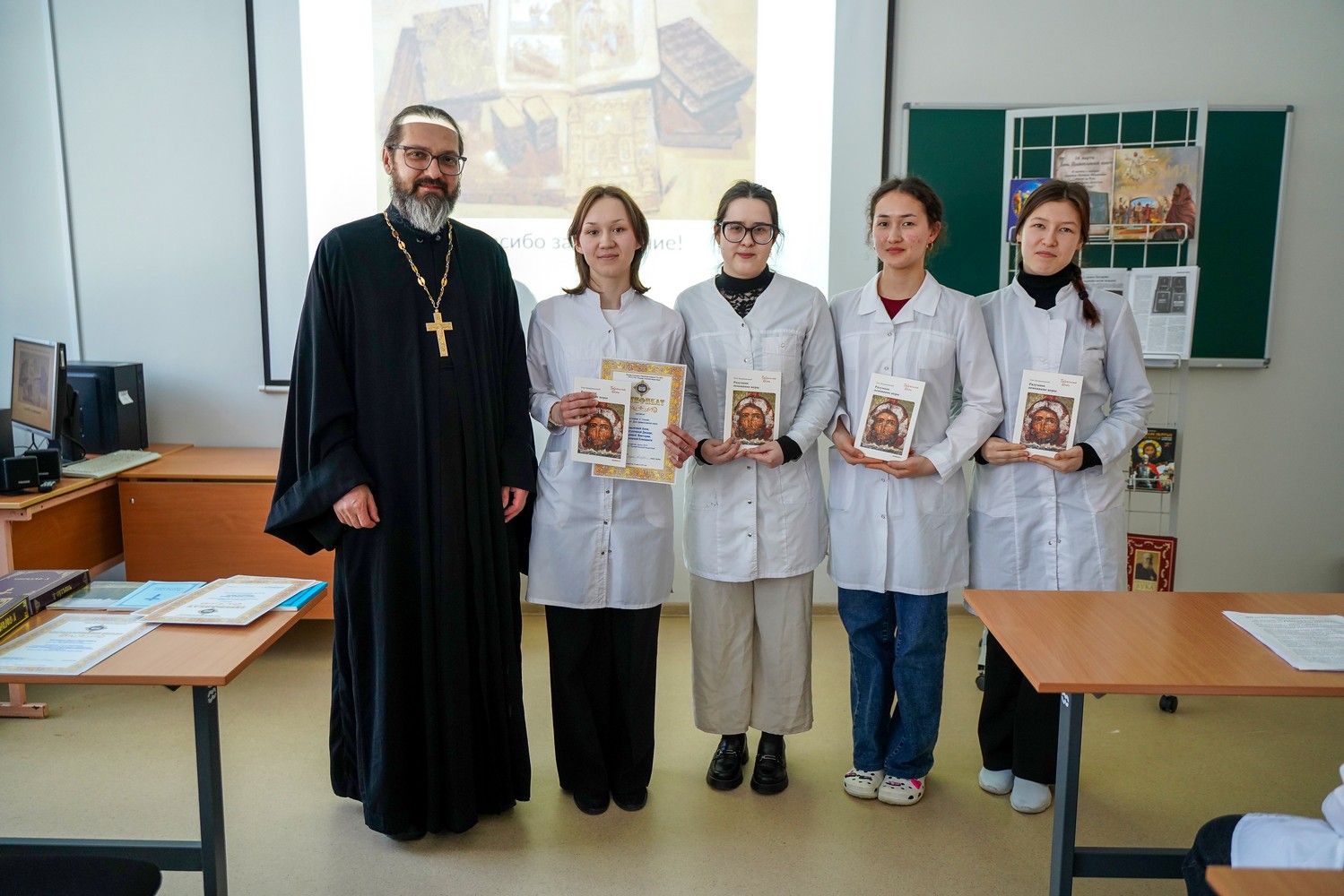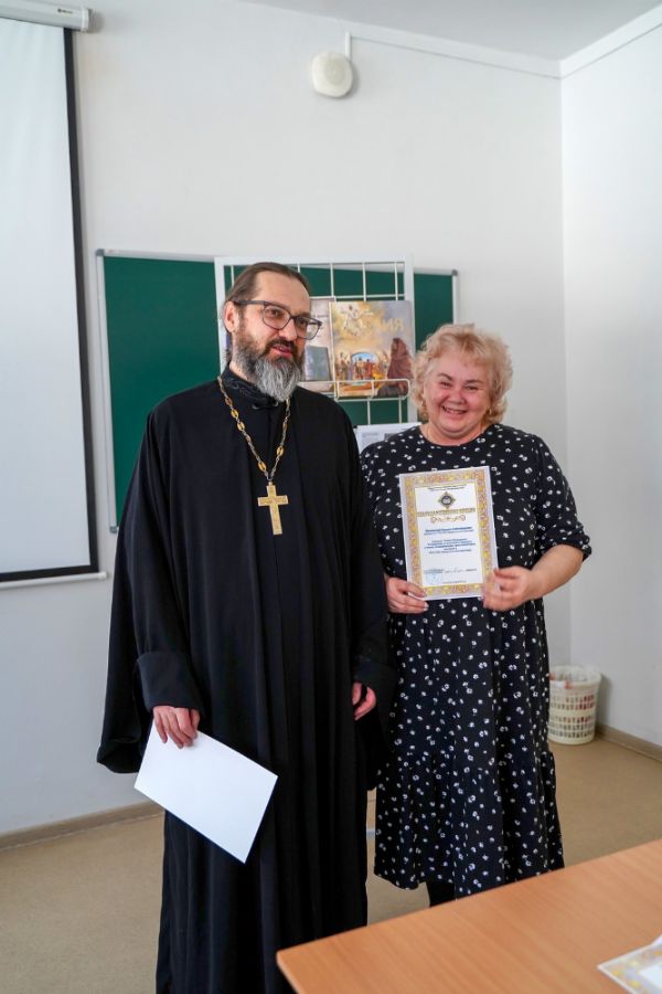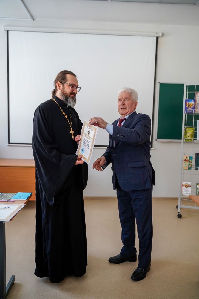 В завершение мероприятия отец Димитрий вручил студентам и их научным руководителям сертификаты и благодарственные письма Йошкар-Олинской епархии и душеполезные книги в подарок.