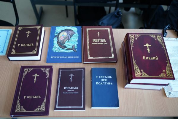 Экземпляр Библии на марийском языке отец Димитрий передал в дар библиотеке Медколледжа. А переводчик Института перевода Библии Лариса Николаевна Орзаева рассказала, как велась эта масштабная работа.