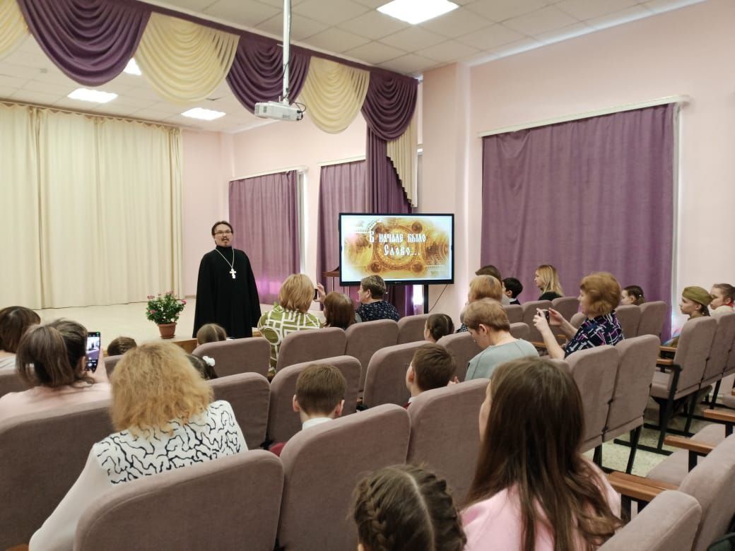 Мероприятие началось с приветственного слова руководителя отдела образования районной администрации Надежды Михайловны Ивановой, которая пожелала юным чтецам успехов в конкурсе. Клирик храма Всех святых в земле Российской просиявших иерей Димитрий Кудряшов в своем выступлении отметил необходимость бережного отношения к русскому языку, как основе нашего государства, которое возникло и развивалось во времени как православное, а российская культура формировалась как православная культура, в этом ее своеобразие и высокая ценность.