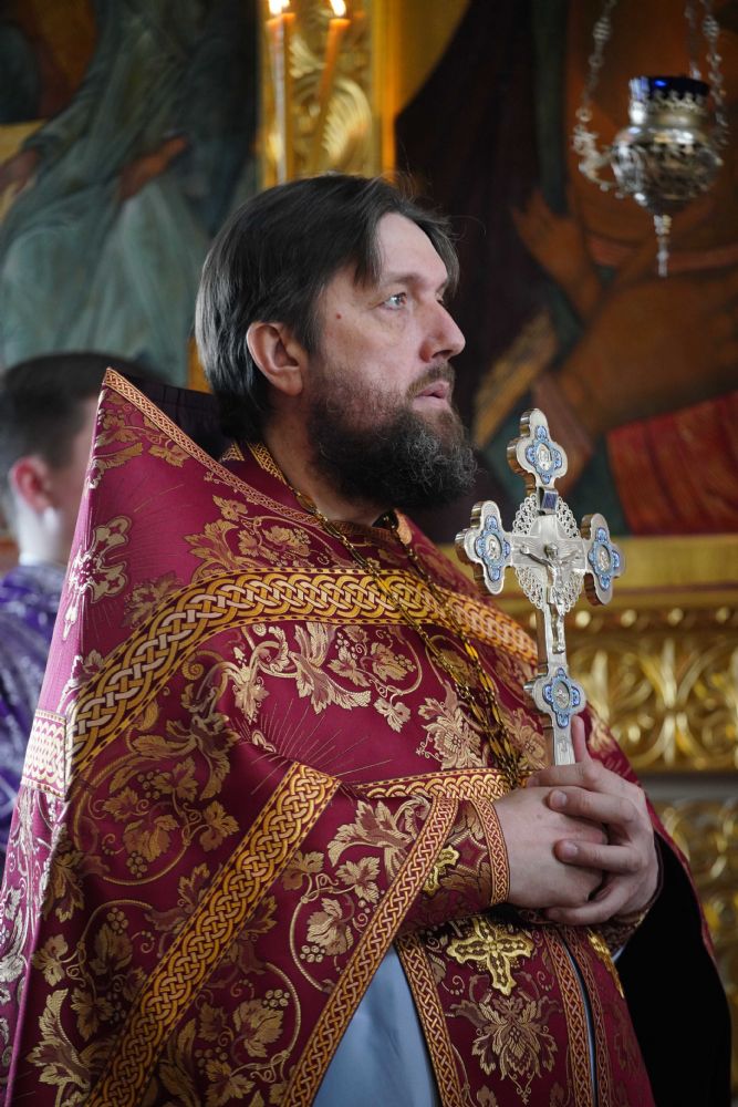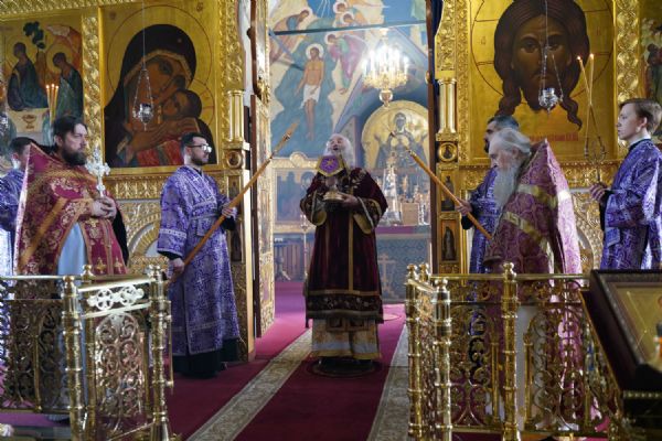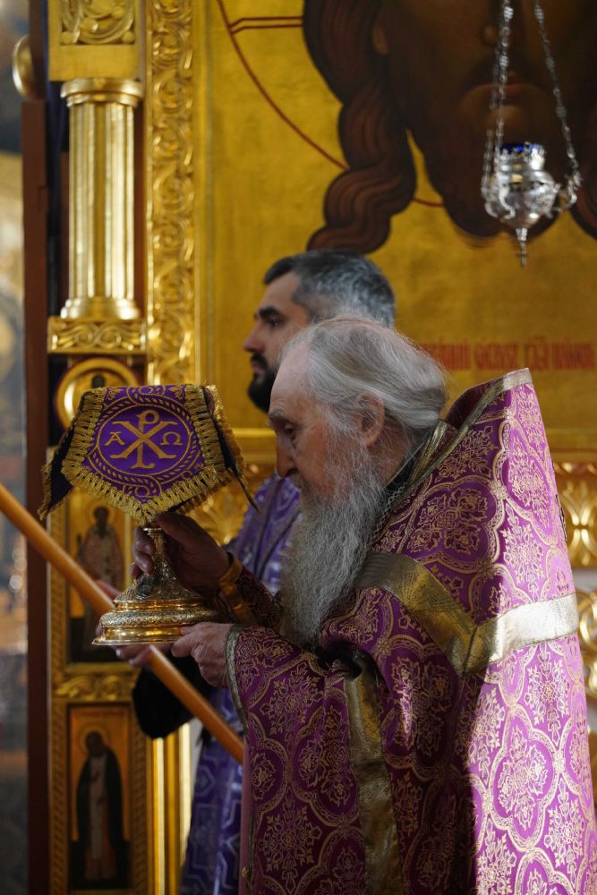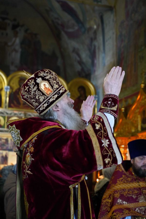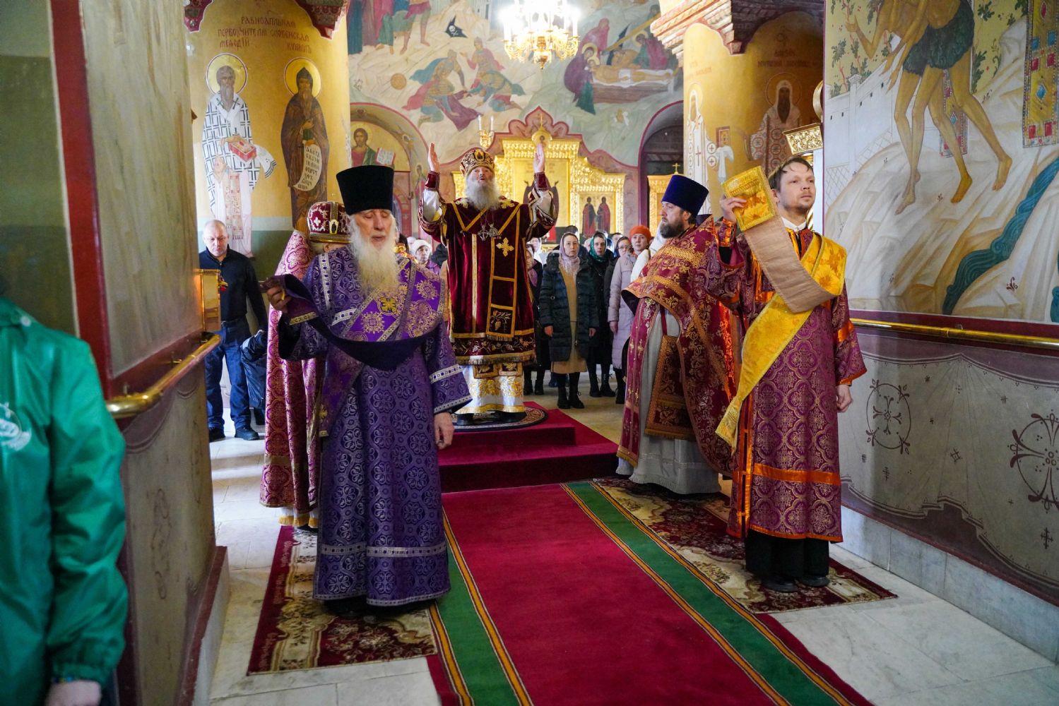 Архипастырю сослужили настоятель собора протоиерей Евгений Кутырев, клирики собора протоиерей Андрей Норкин и диакон Владимир Лихачев, а также протодиакон Михаил Козловский. Песнопения исполнял хор собора под управлением регента Ангелины Бабиной.