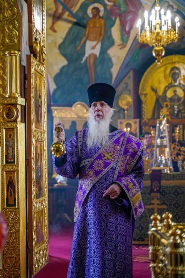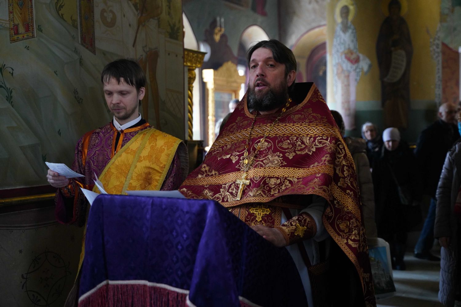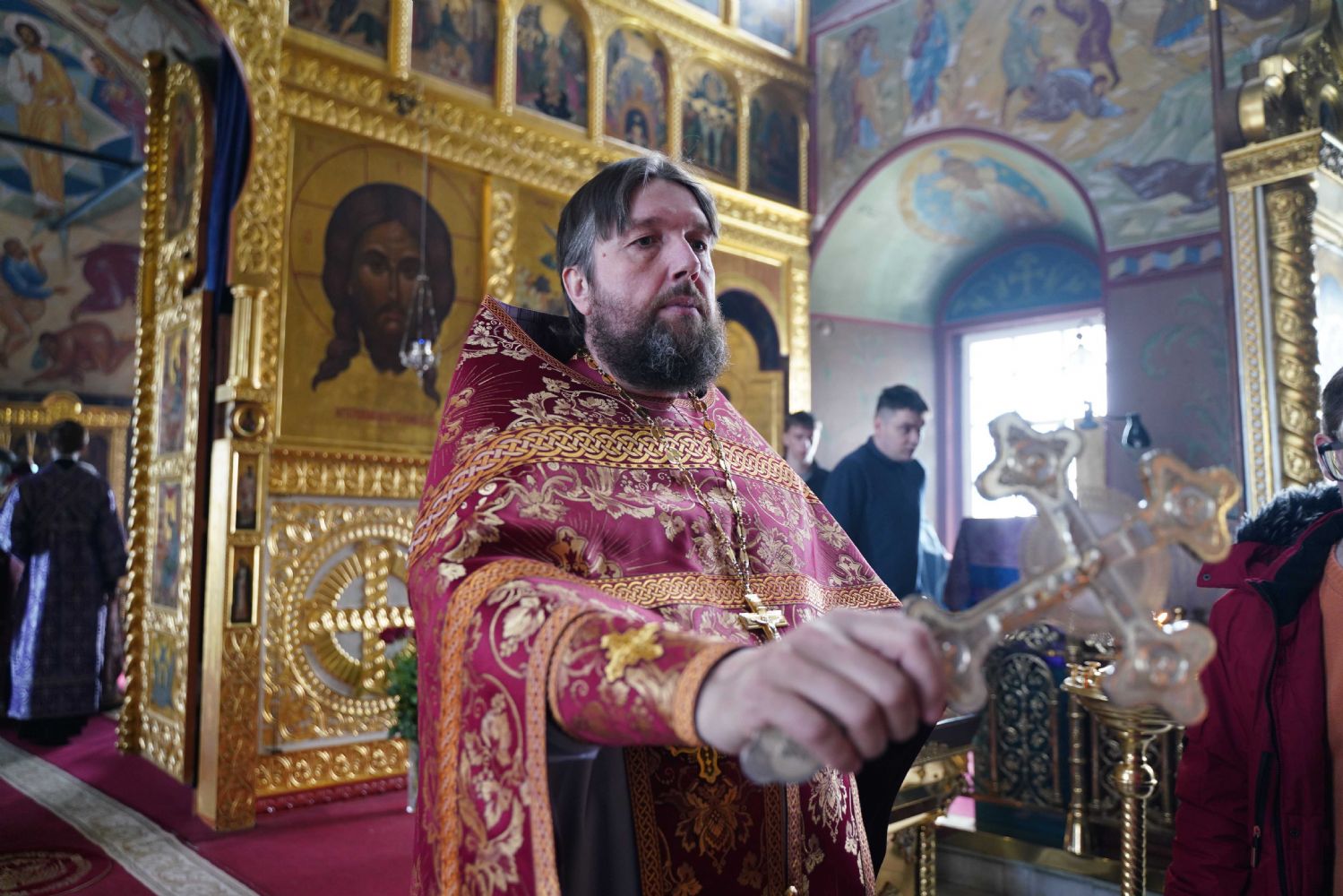 Архипастырю сослужили настоятель собора протоиерей Евгений Кутырев, клирики собора протоиерей Андрей Норкин и диакон Владимир Лихачев, а также протодиакон Михаил Козловский. Песнопения исполнял хор собора под управлением регента Ангелины Бабиной.