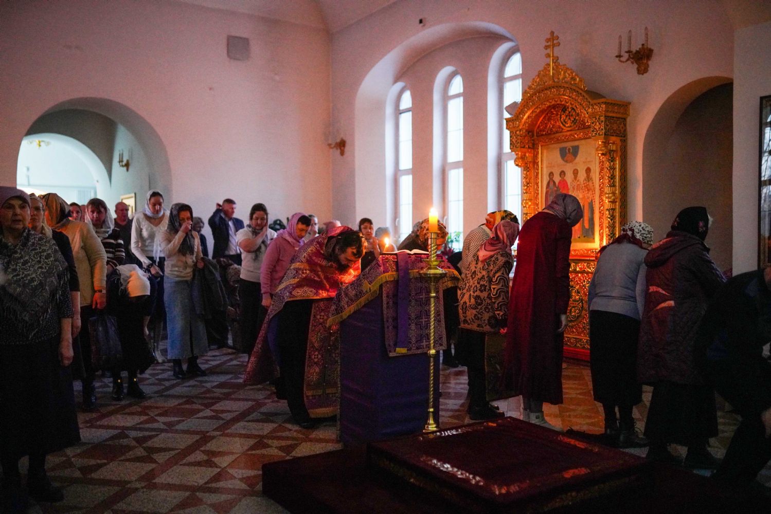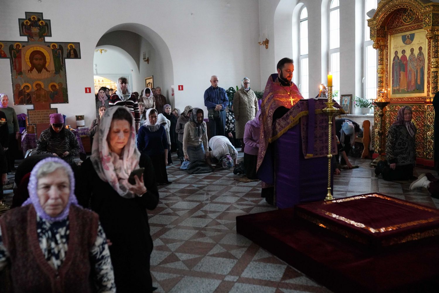 Чтение Великого канона в центре храма начал митрополит Иоанн – он прочитал первые три песни канона. Далее чтение продолжили иереи Константин Домрачев, Виктор Умрихин и Николай Бабич.