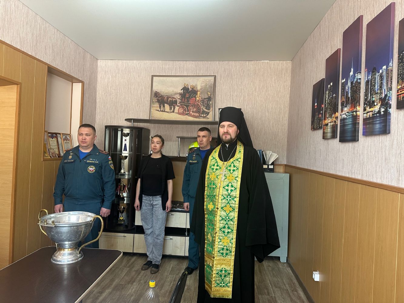 25 марта, по благословению епископа Волжского и Сернурского Феофана и по приглашению начальника пожарно-спасательной части №12 г. Волжска Олега Данилова, руководитель отдела по социальному служению и церковной благотворительности Волжской епархии иеромонах Амвросий (Ульянов) освятил служебные помещения пожарной части и спецтехнику.