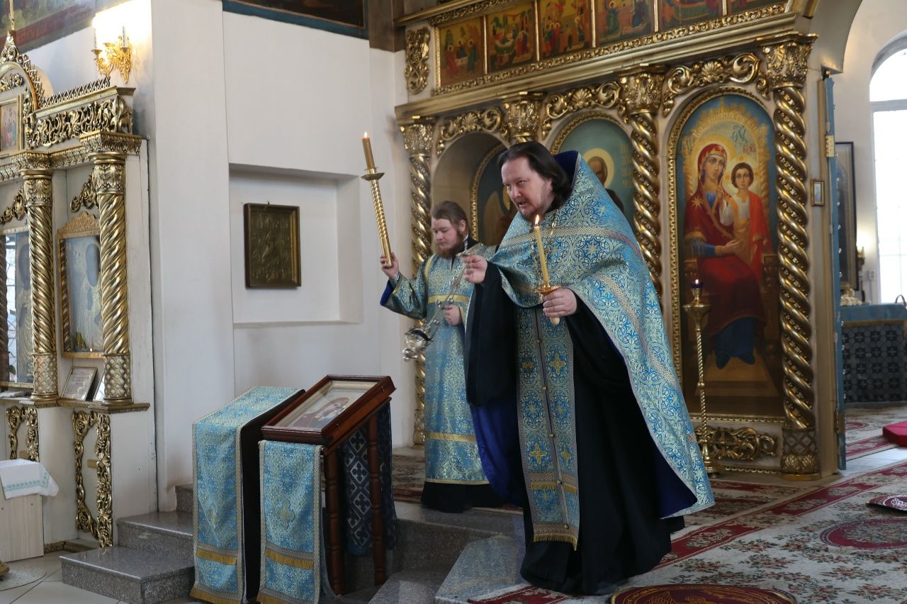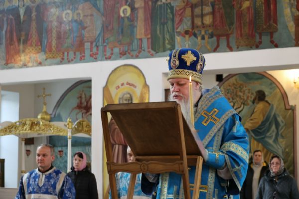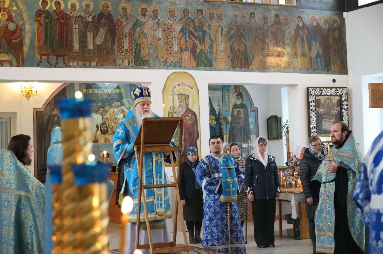 27 марта вечером, накануне субботы 5-й седмицы Великого поста, епископ Волжский и Сернурский Феофан возглавил утреню с чтением Акафиста Пресвятой Богородице в Никольском кафедральном соборе г. Волжска.