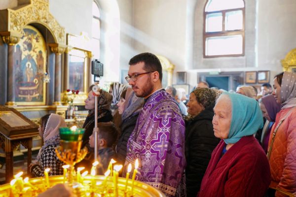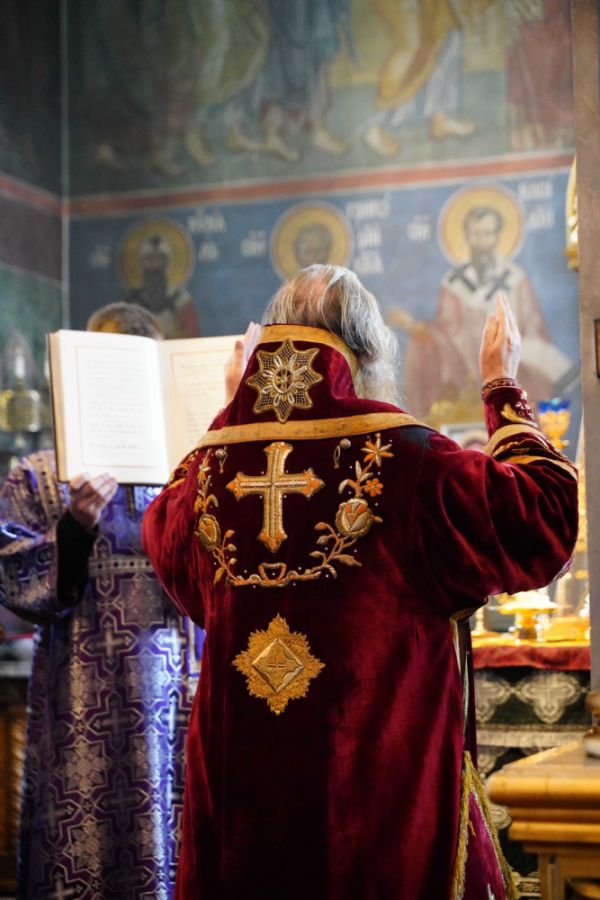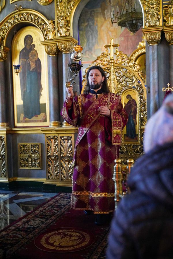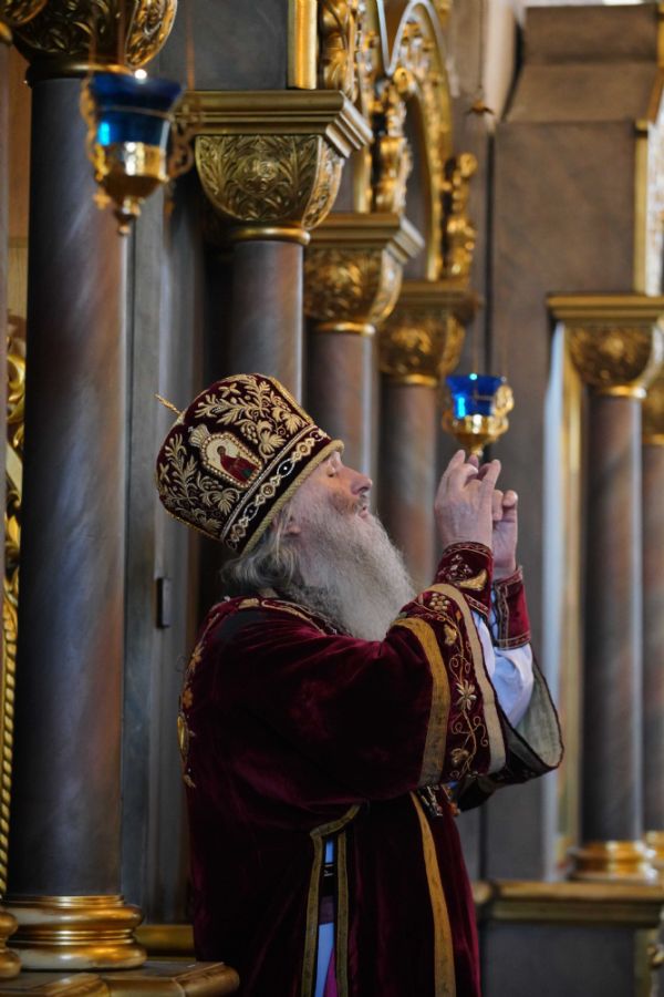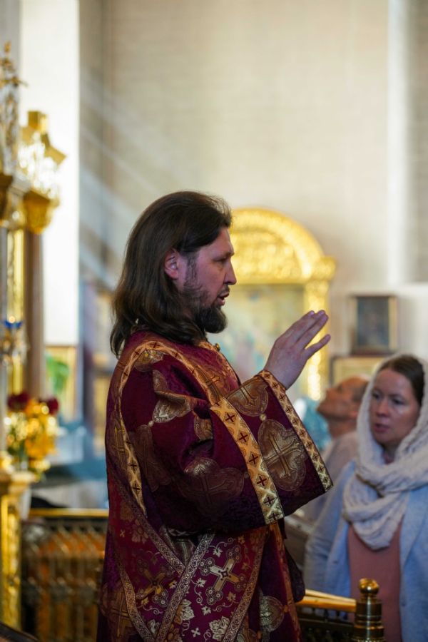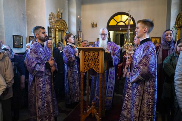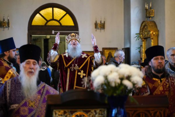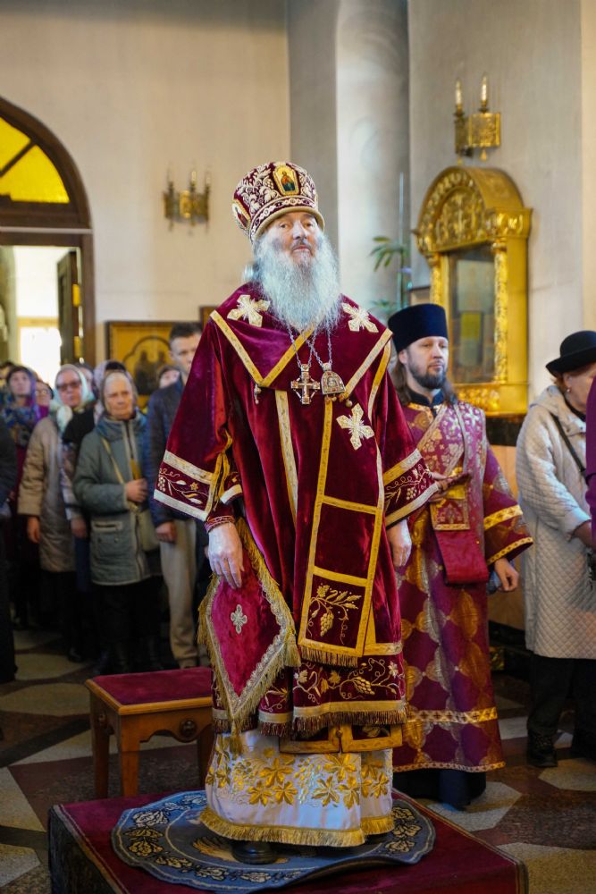 Его Высокопреосвященству сослужили клирики храма иерей Никита Иванов и диакон Александр Мельников, а также протодиакон Михаил Козловский. Песнопения исполнял хор храма под управлением Ольги Акилбаевой.