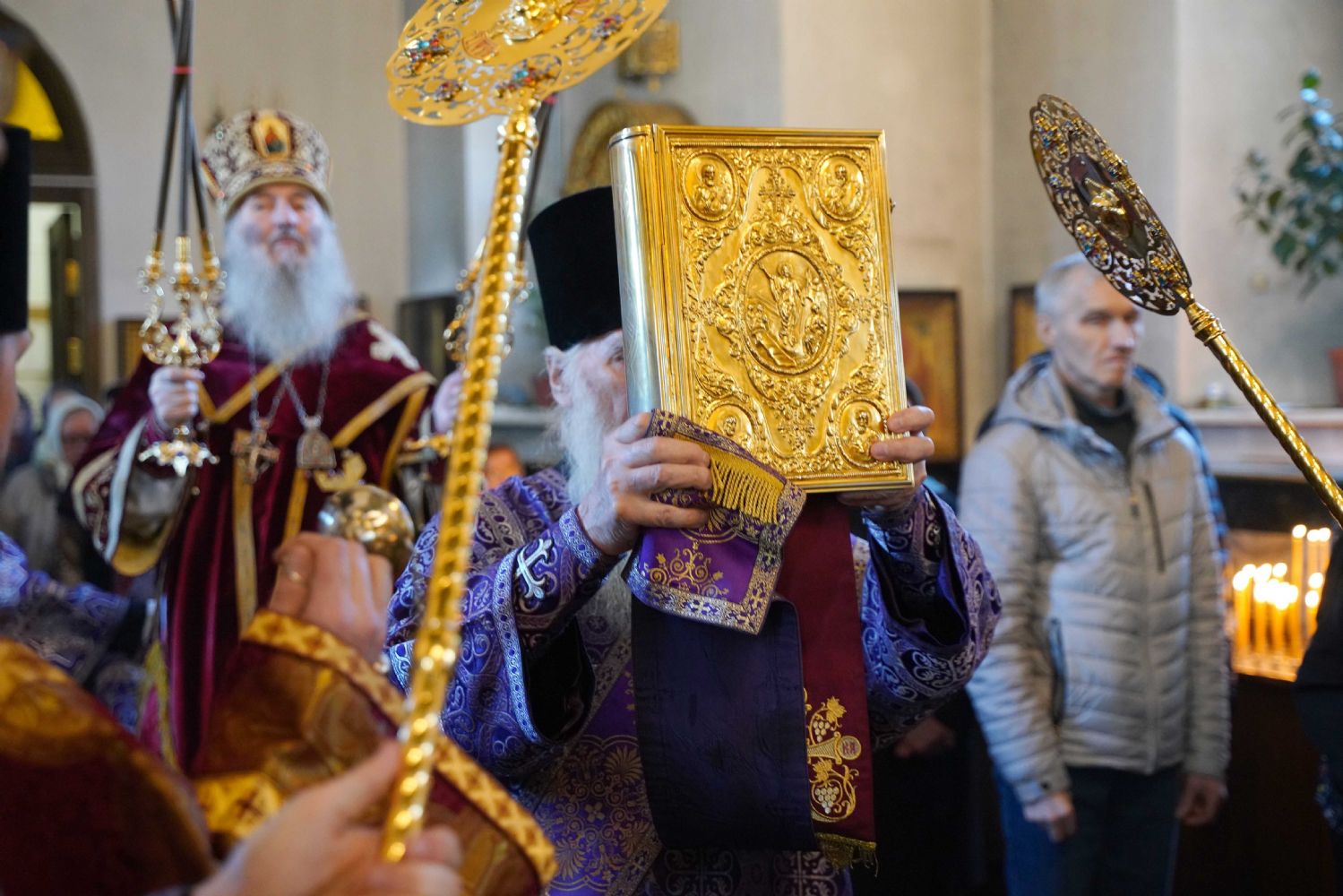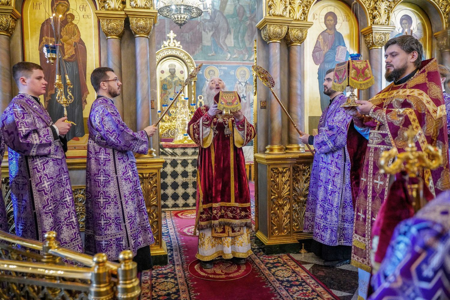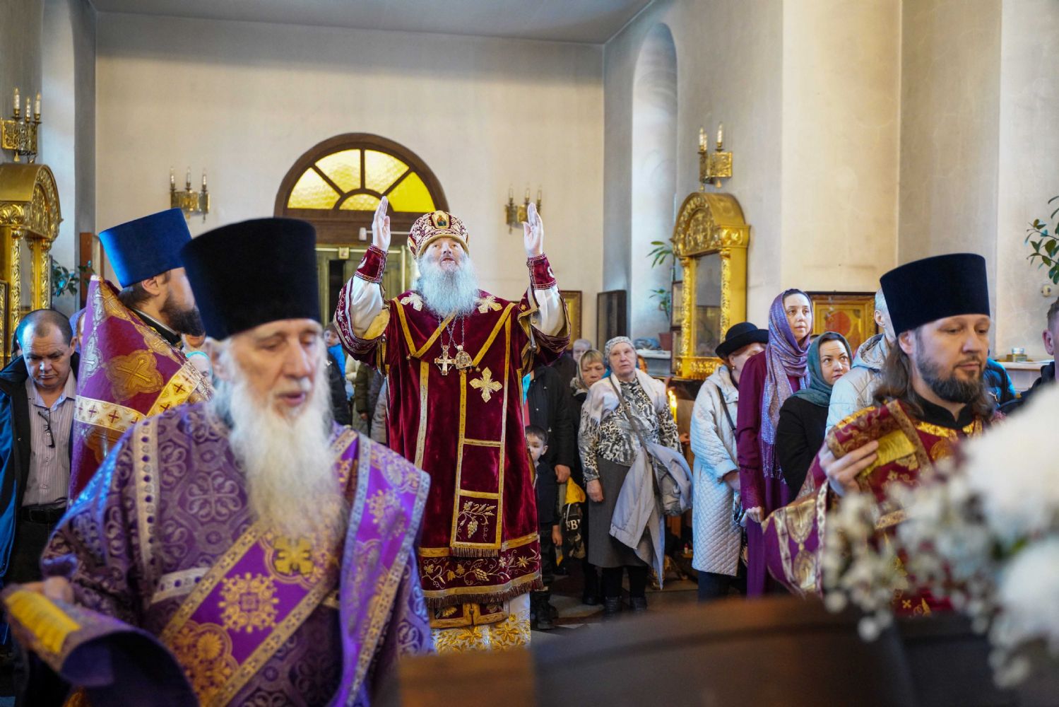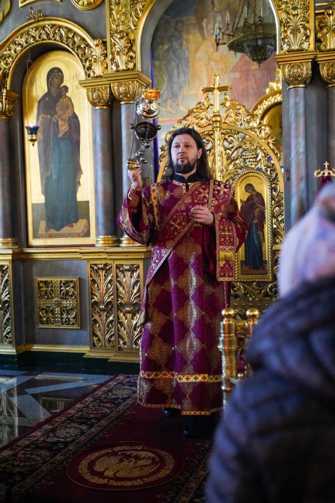 Его Высокопреосвященству сослужили клирики храма иерей Никита Иванов и диакон Александр Мельников, а также протодиакон Михаил Козловский. Песнопения исполнял хор храма под управлением Ольги Акилбаевой.