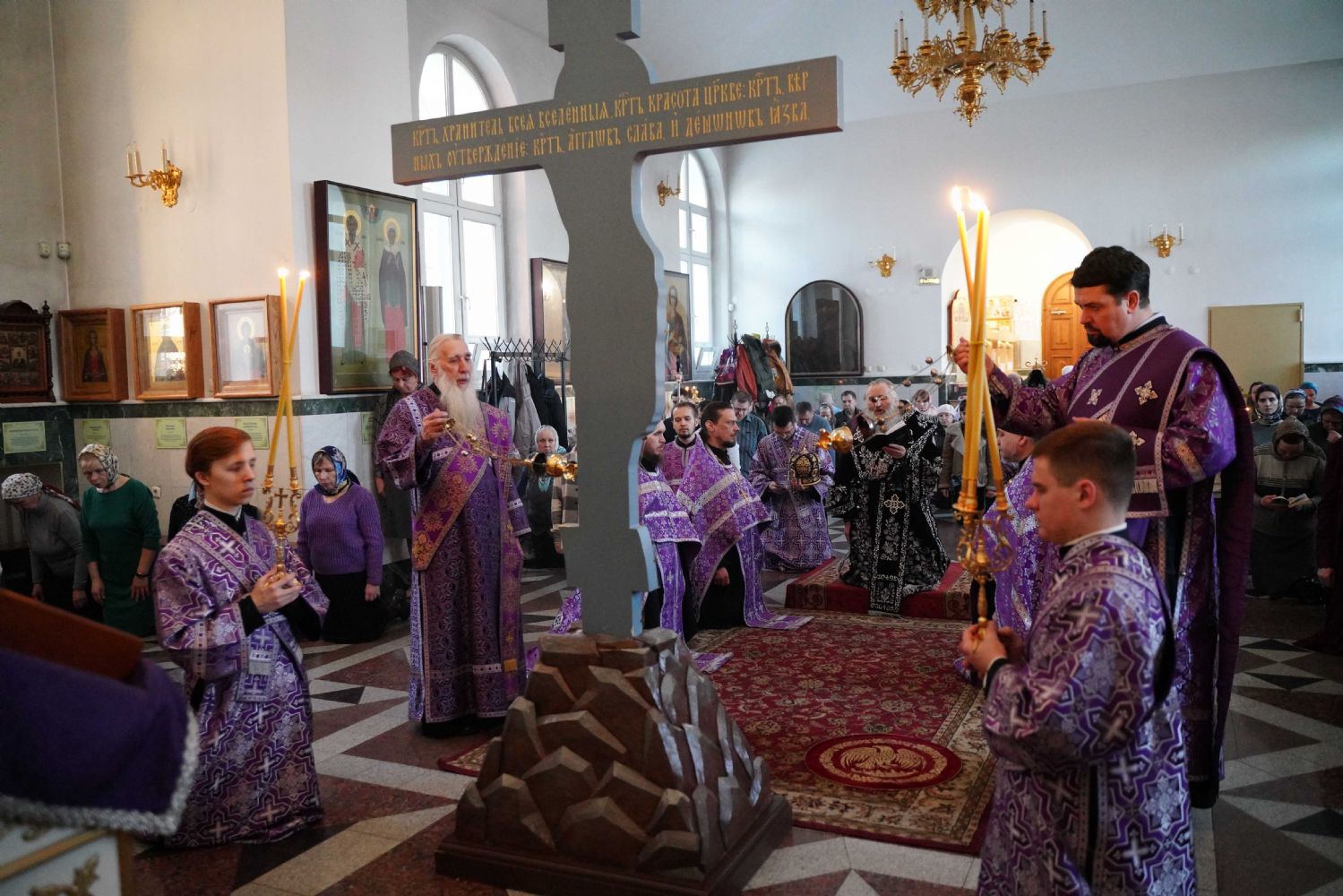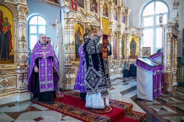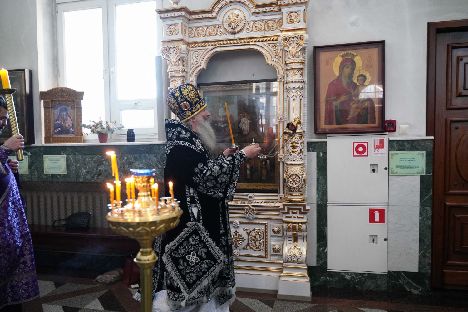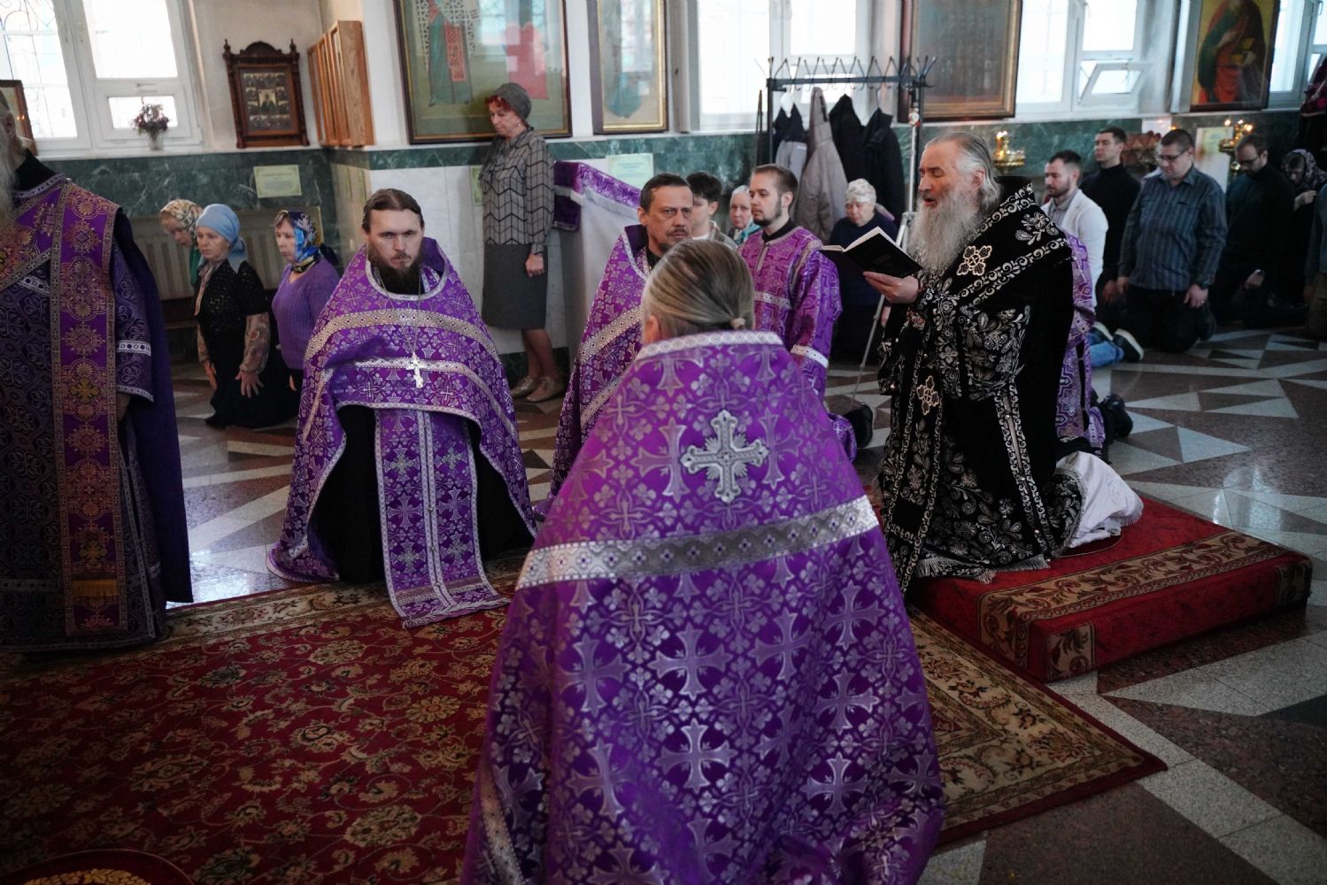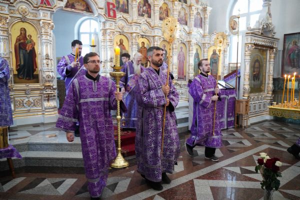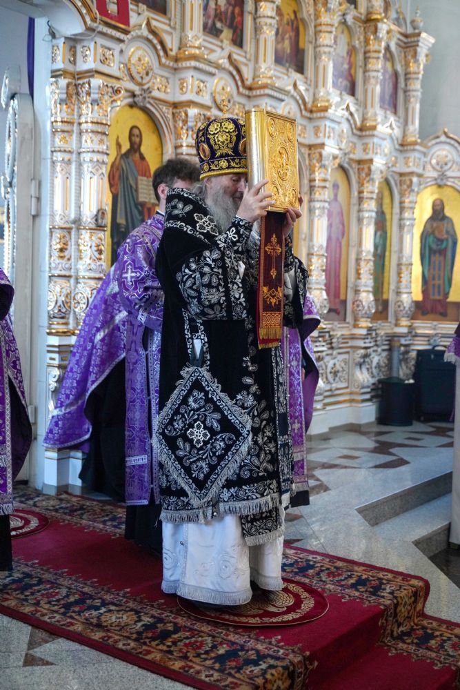 Владыке сослужили настоятель собора иерей Андрей Кочаков, клирики собора иерей Леонид Вылекжанин, иерей Димитрий Лукьянов и диакон Алексий Кузнецов, а также протодиакон Михаил Козловский. Песнопения исполнял хор собора под управлением Алисы Вылегжаниной.