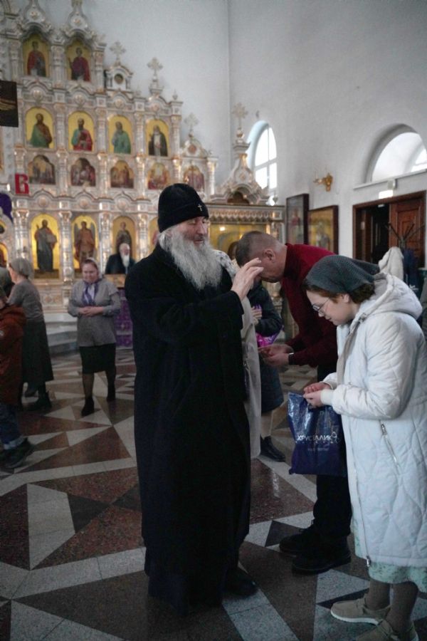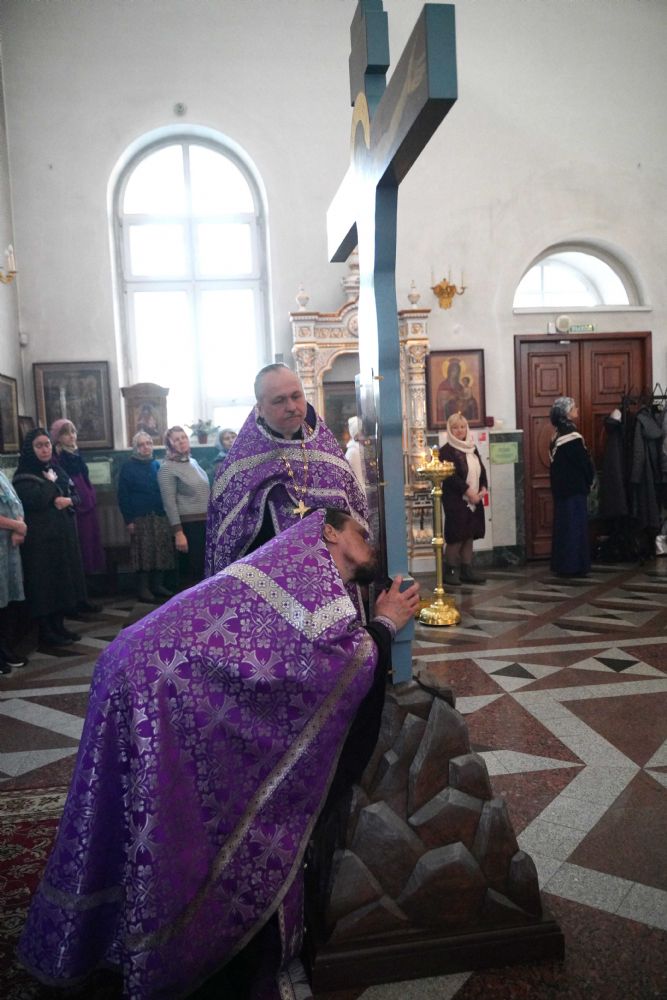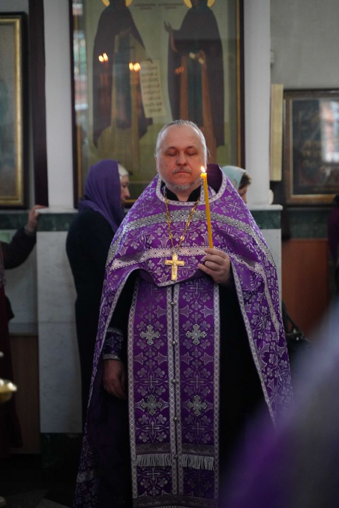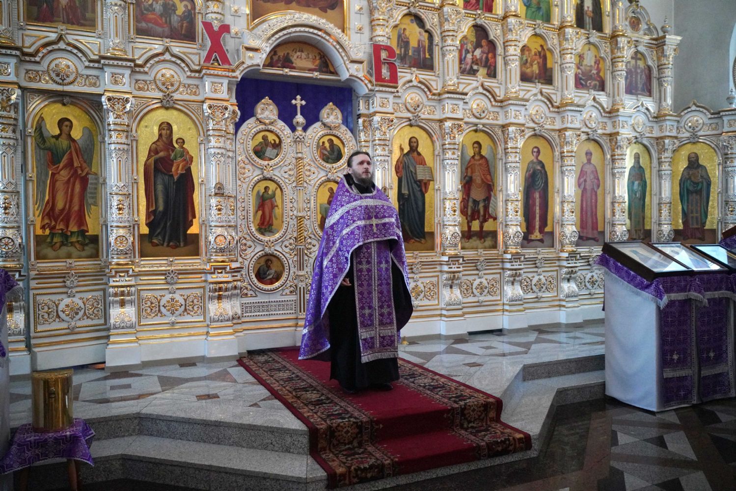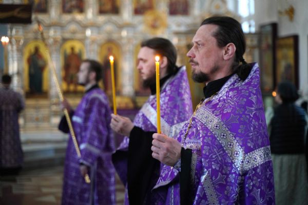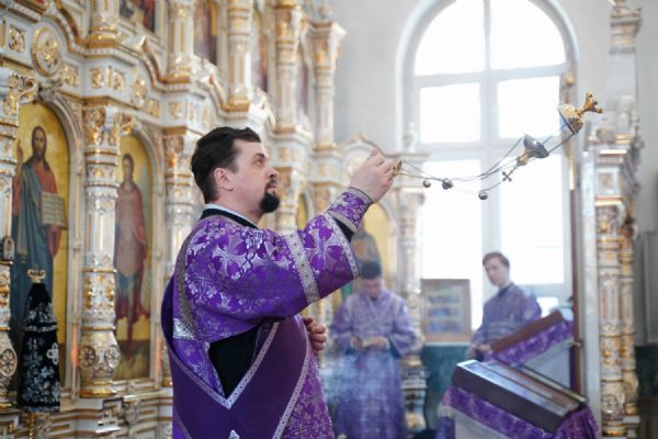 Владыке сослужили настоятель собора иерей Андрей Кочаков, клирики собора иерей Леонид Вылекжанин, иерей Димитрий Лукьянов и диакон Алексий Кузнецов, а также протодиакон Михаил Козловский. Песнопения исполнял хор собора под управлением Алисы Вылегжаниной.