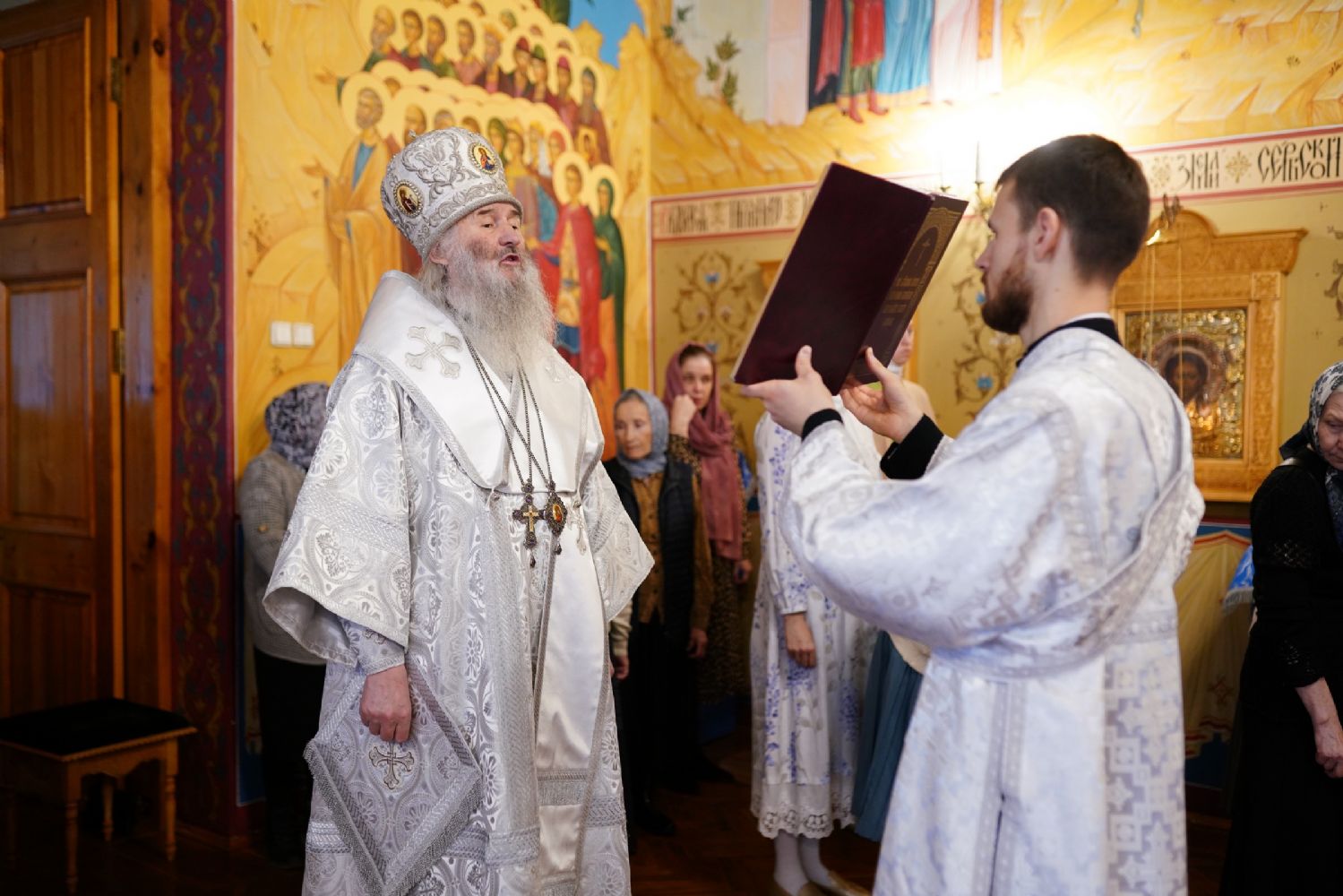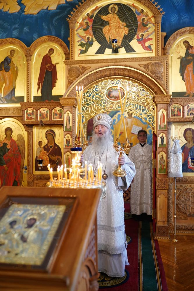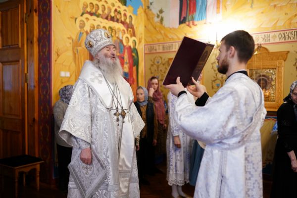 Его Высокопреосвященству сослужили клирик храма преподобного Серафима Саровского г. Йошкар-Олы иерей Виктор Умрихин и протодиакон Михаил Козловский. Песнопения исполнял хор «Благовест» под руководством регента Татьяны Черновой.
