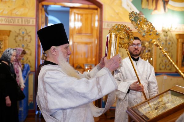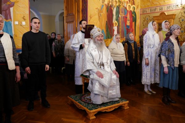 После Литургии владыка обратился к верующим с архипастырским словом, напомнив евангельские события воскрешения Христом праведного Лазаря, друга Господня, брата Марфы и Марии из Вифании, который находился во гробе четыре дня и уже подвергся тлению.