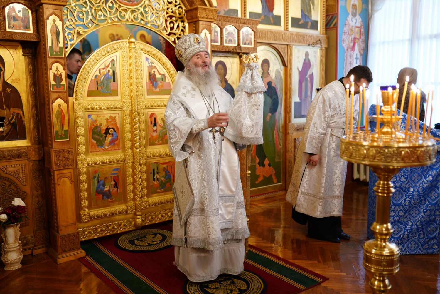 4 апреля, в Лазареву субботу, митрополит Йошкар-Олинский и Марийский Иоанн совершил Божественную литургию в домовом храме епархиального управления в честь иконы Божией Матери «Троеручица».