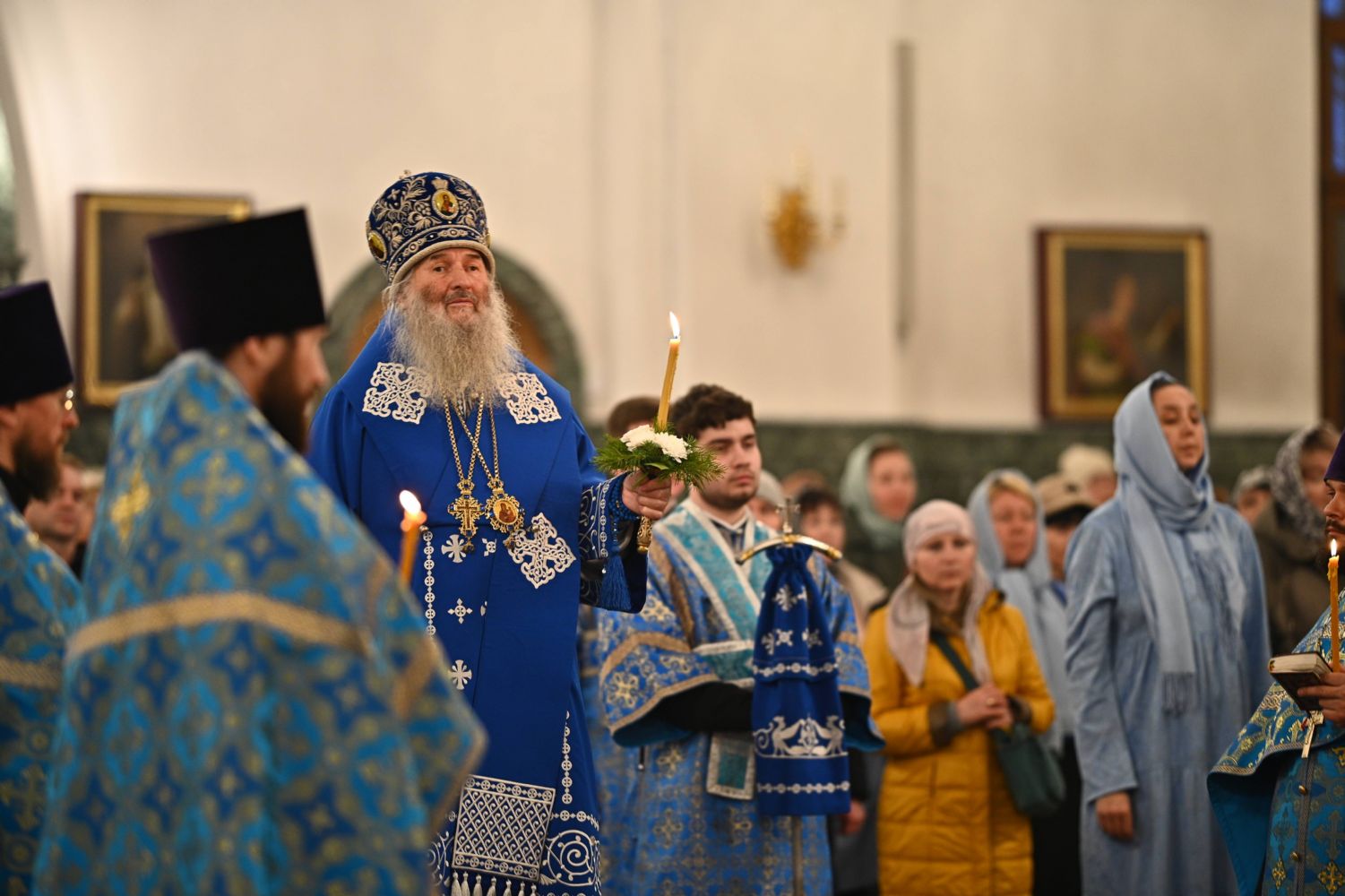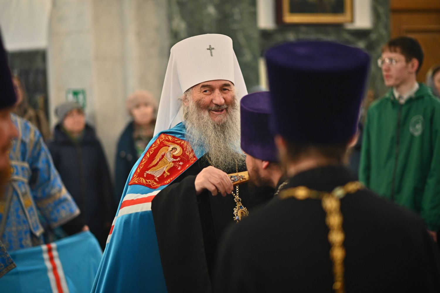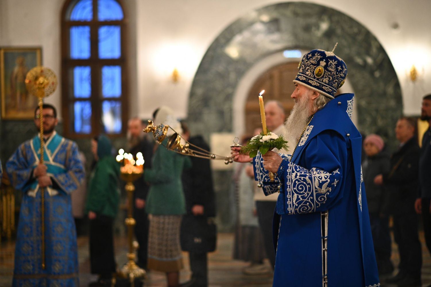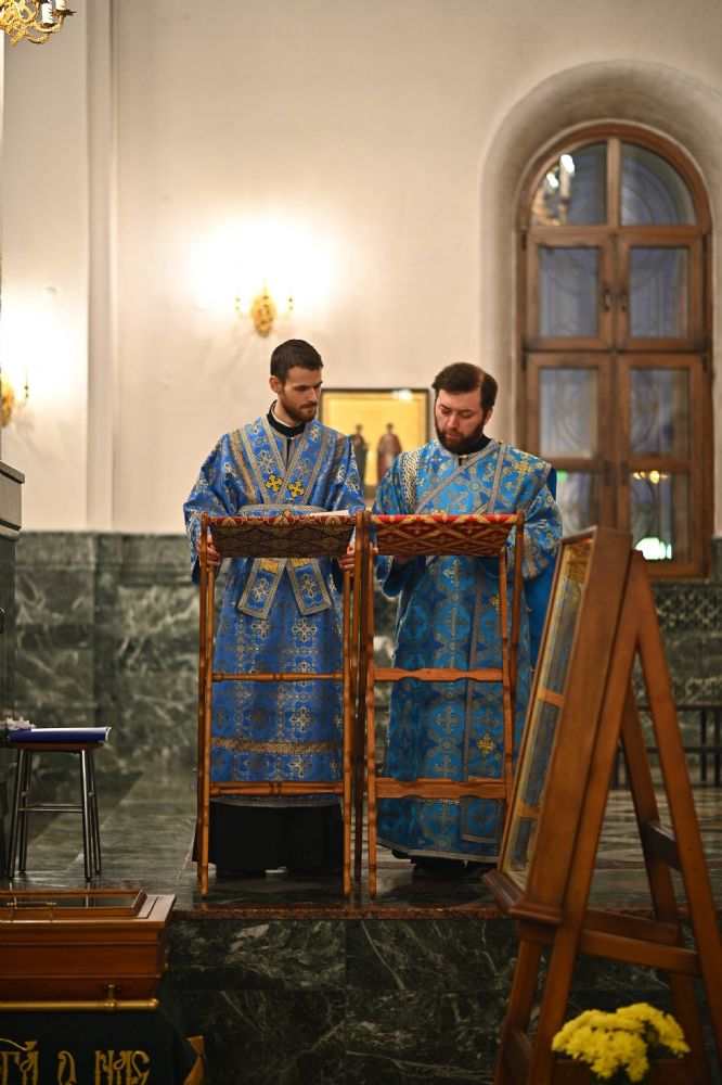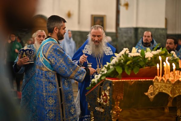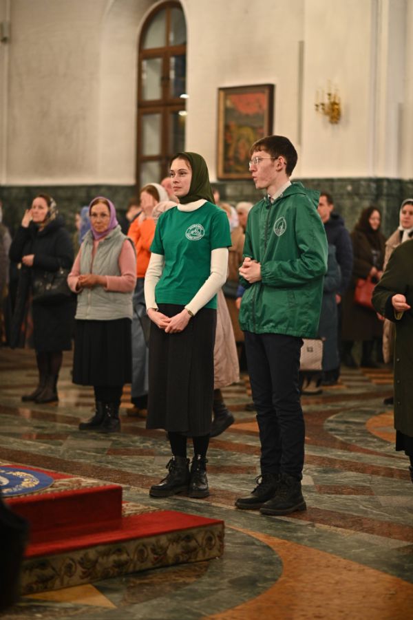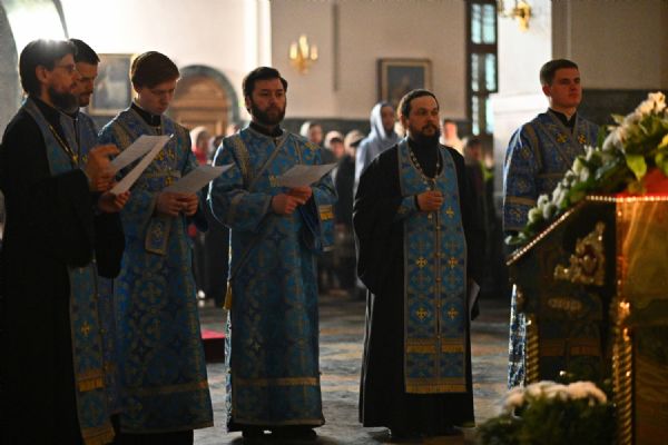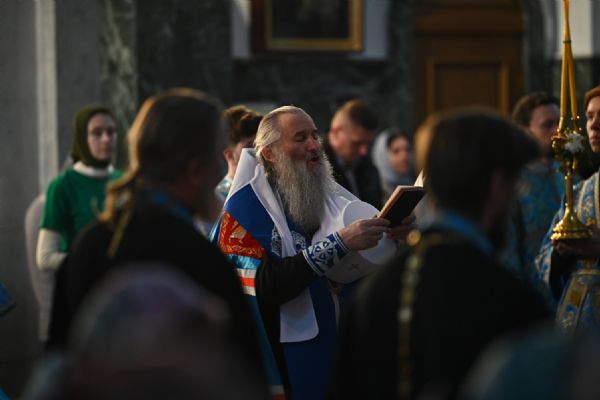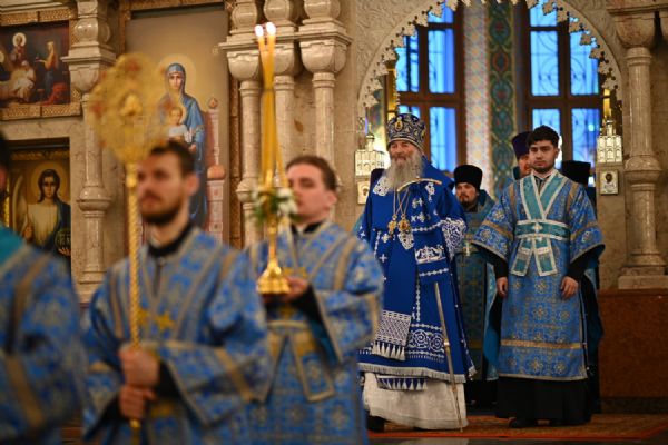 Архипастырю сослужили ключарь собора протоиерей Сергий Поглазов, клирики собора иереи Никифор Захаров, Евгений Самойлов, Александр Староверов и диакон Артемий Бобоч, а также протодиакон Михаил Козловский. Пел архиерейский хор «Благовест» под руководством регента Татьяны Черновой.
