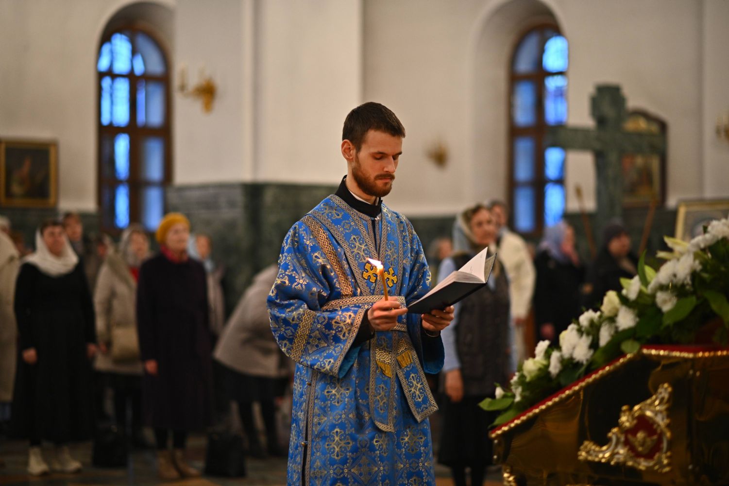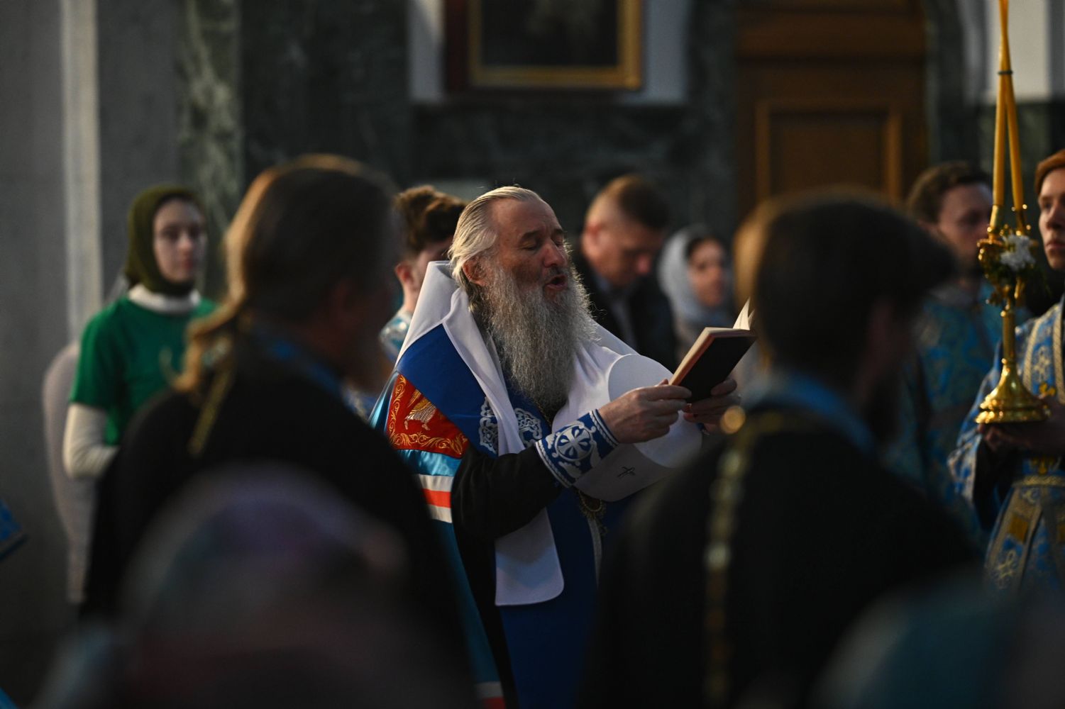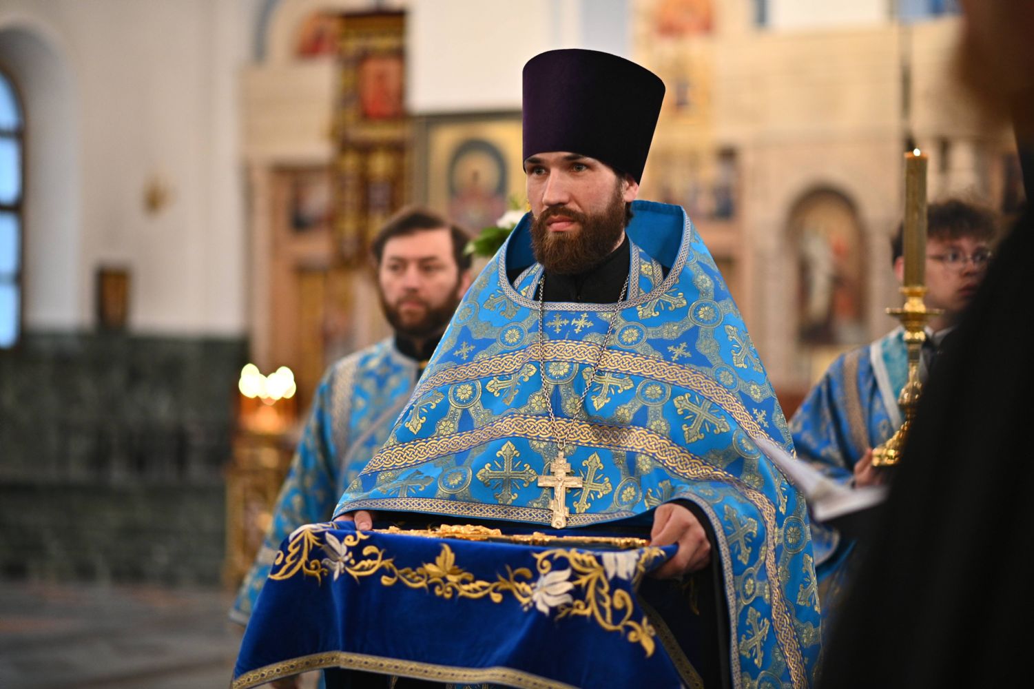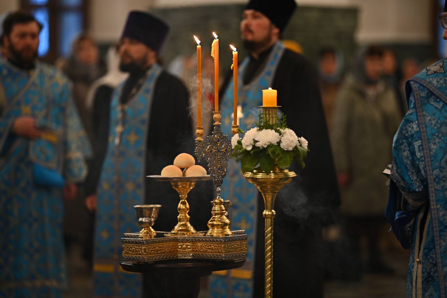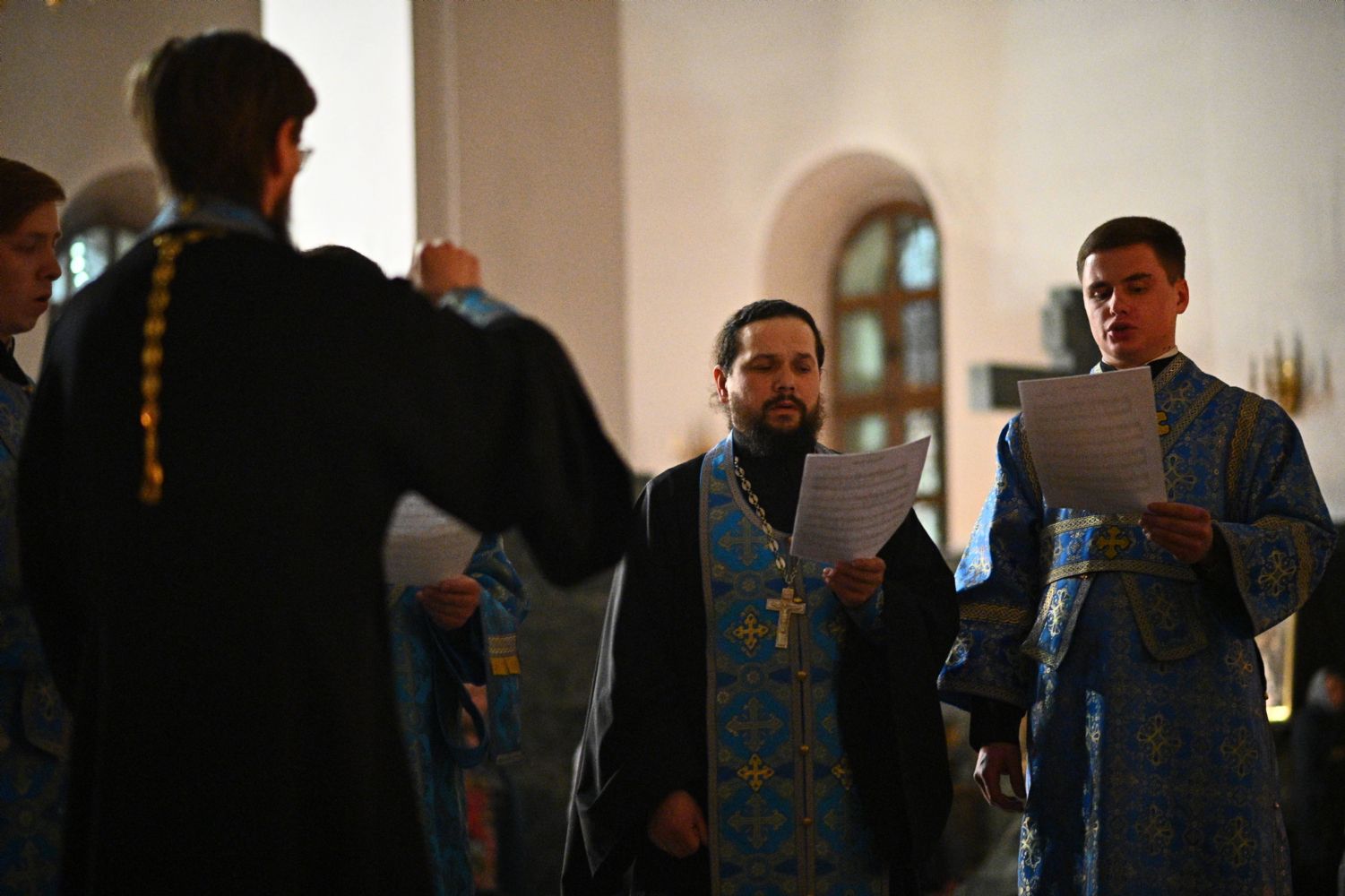 Архипастырю сослужили ключарь собора протоиерей Сергий Поглазов, клирики собора иереи Никифор Захаров, Евгений Самойлов, Александр Староверов и диакон Артемий Бобоч, а также протодиакон Михаил Козловский. Пел архиерейский хор «Благовест» под руководством регента Татьяны Черновой.