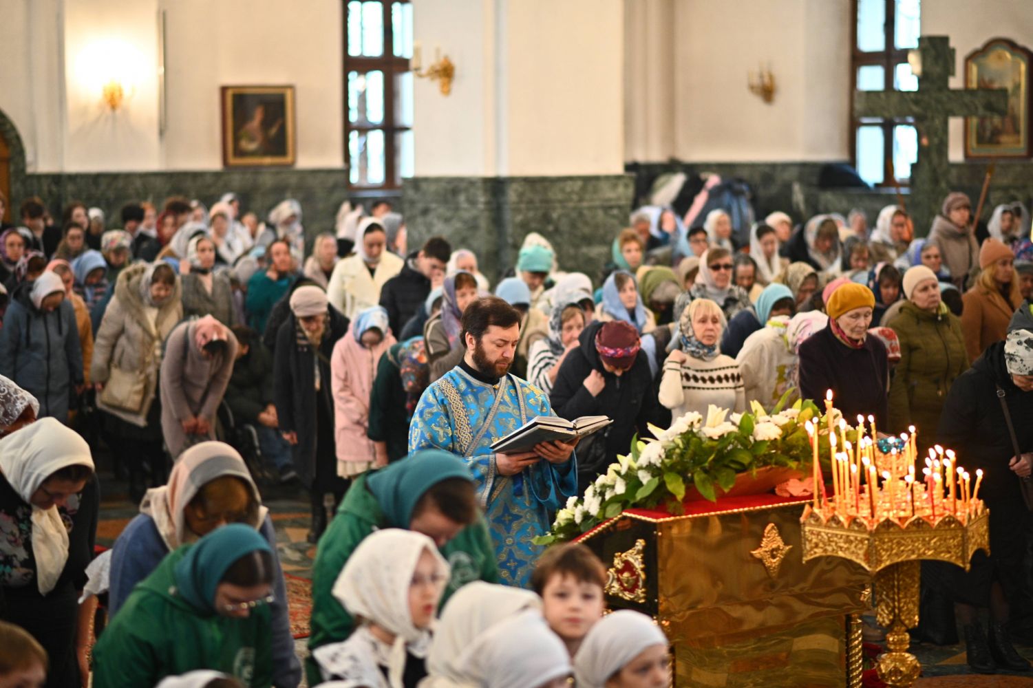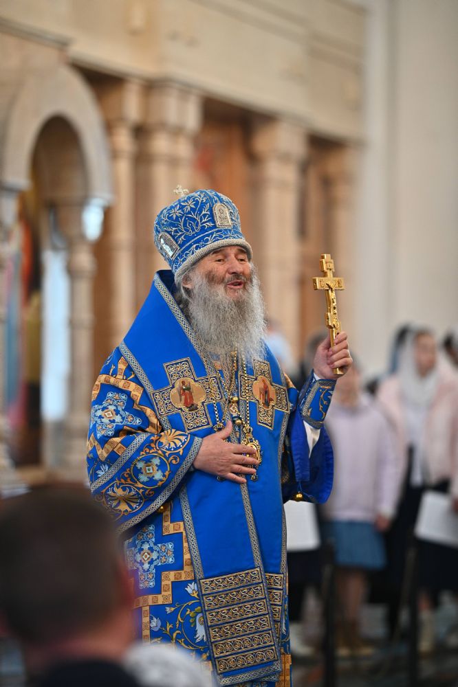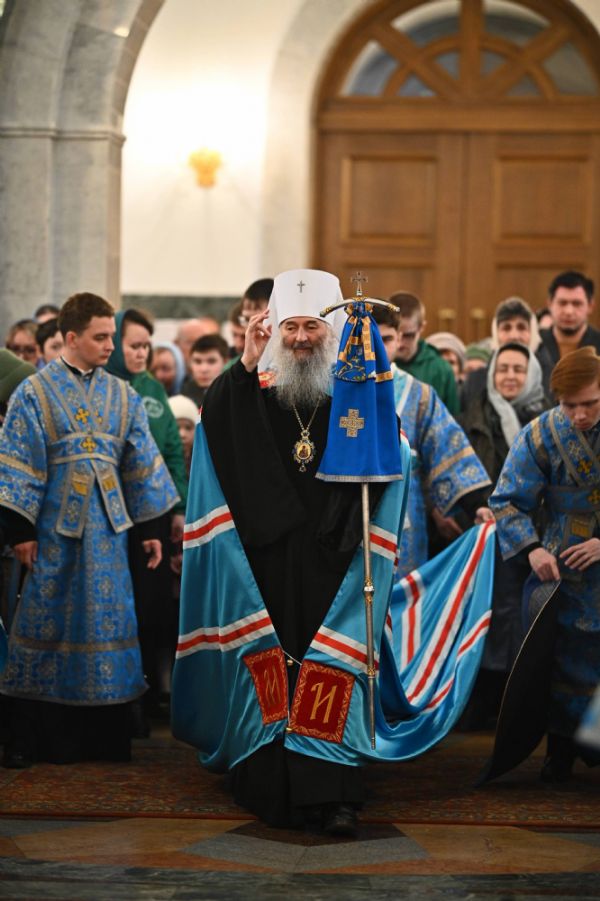 Его Высокопреосвященству сослужили ключарь собора протоиерей Сергий Поглазов, клирики собора и протодиакон Михаил Козловский. Песнопения исполнял архиерейский хор «Благовест» под управлением регента Татьяны Черновой.