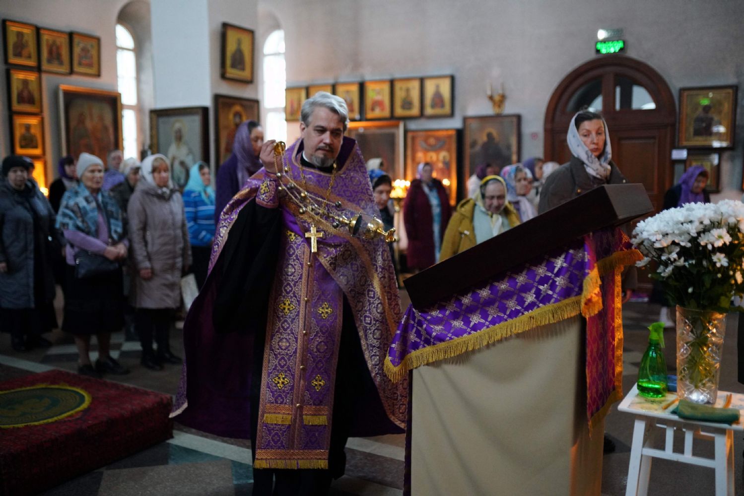 Владыке сослужили настоятель храма иерей Александр Лоскутов, клирики храма иерей Никита Смирнов, иерей Евгений Симаков и диакон Даниил Зорин, а также протодиакон Михаил Козловский. Песнопения исполнял хор храма под управлением регента Наталии Поповой.