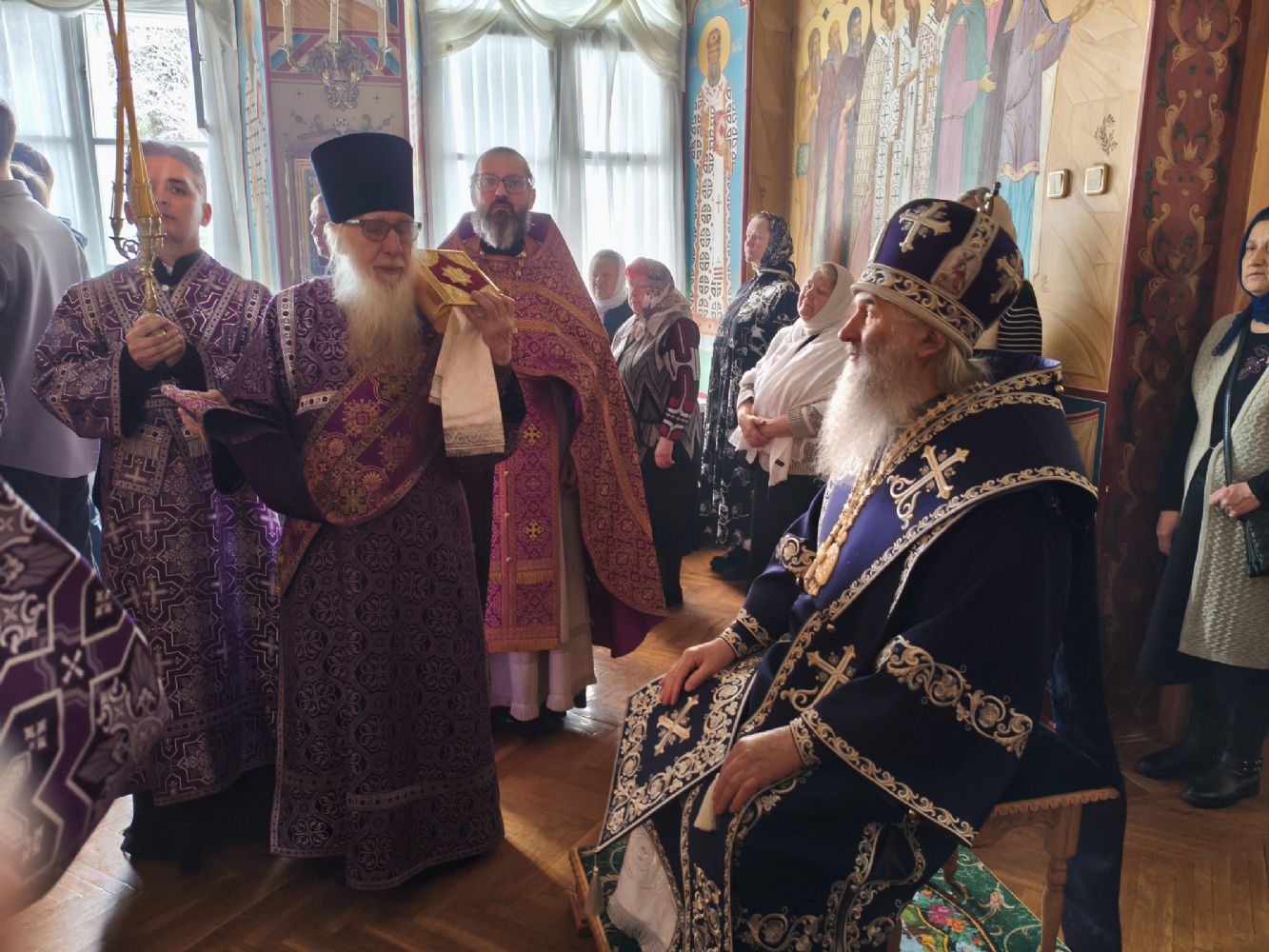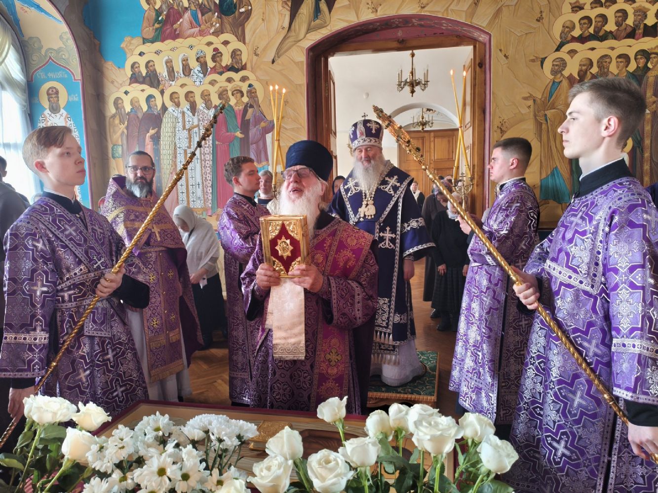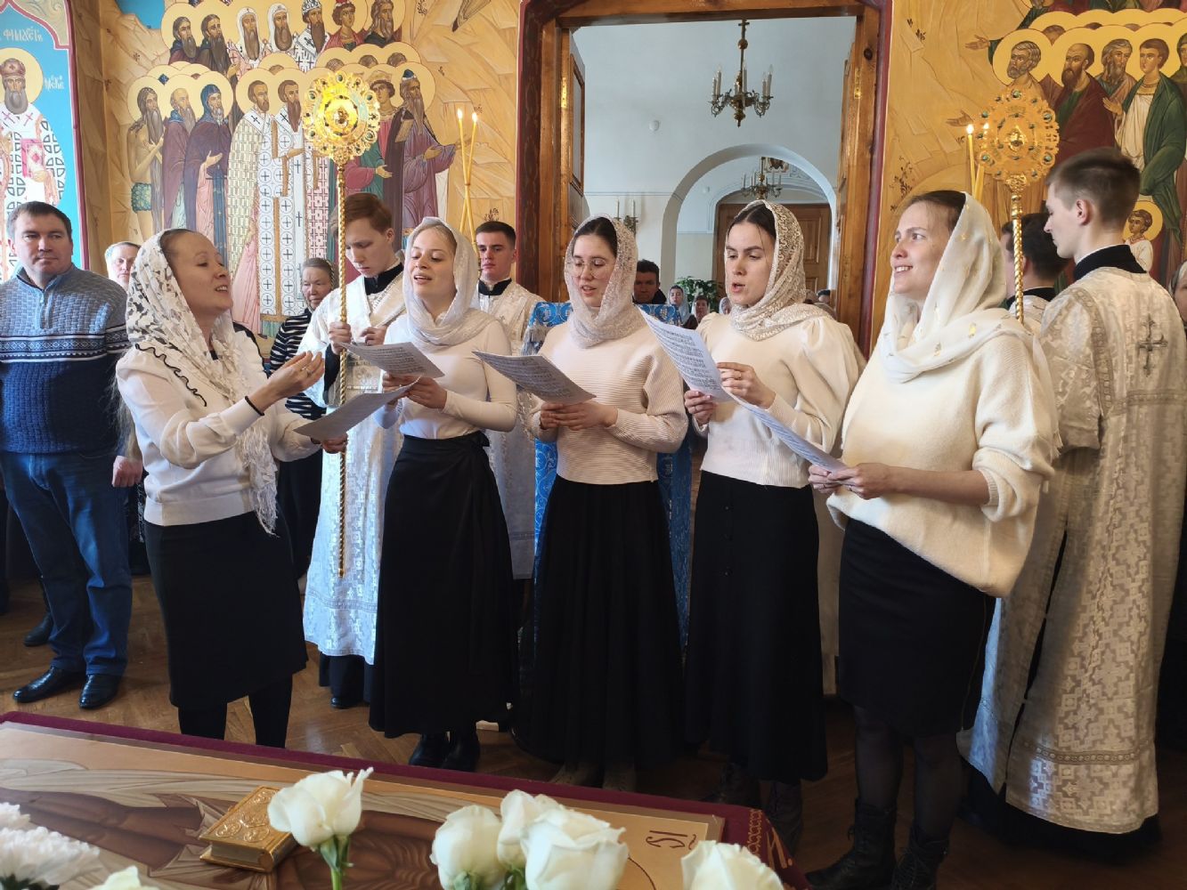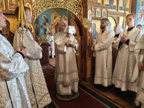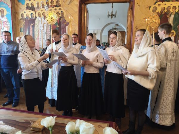 Владыке сослужили секретарь Йошкар-Олинского епархиального управления иерей Димитрий Дьяков и протодиакон Михаил Козловский. Песнопения исполнял хор «Благовест» под руководством регента Татьяны Черновой.
