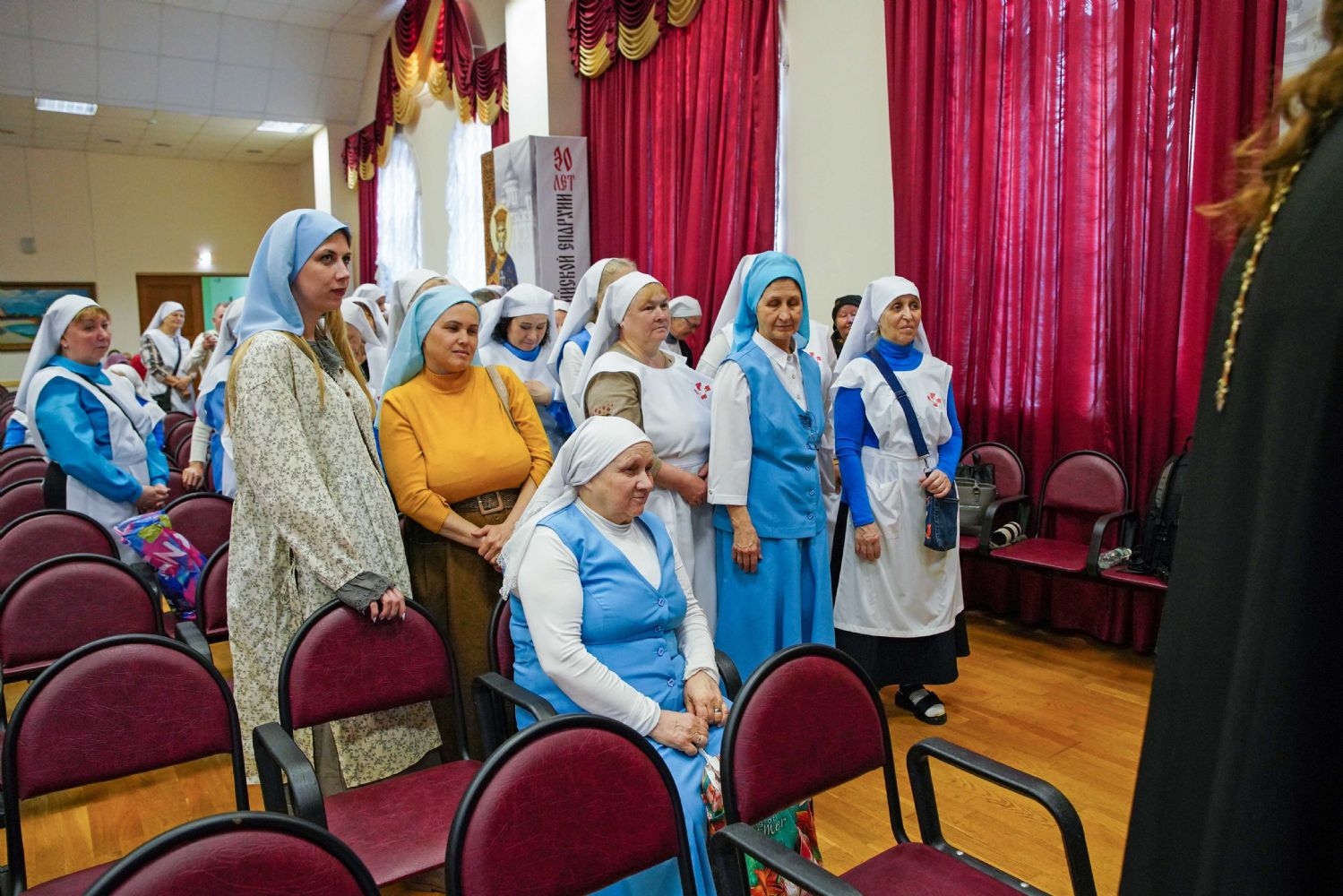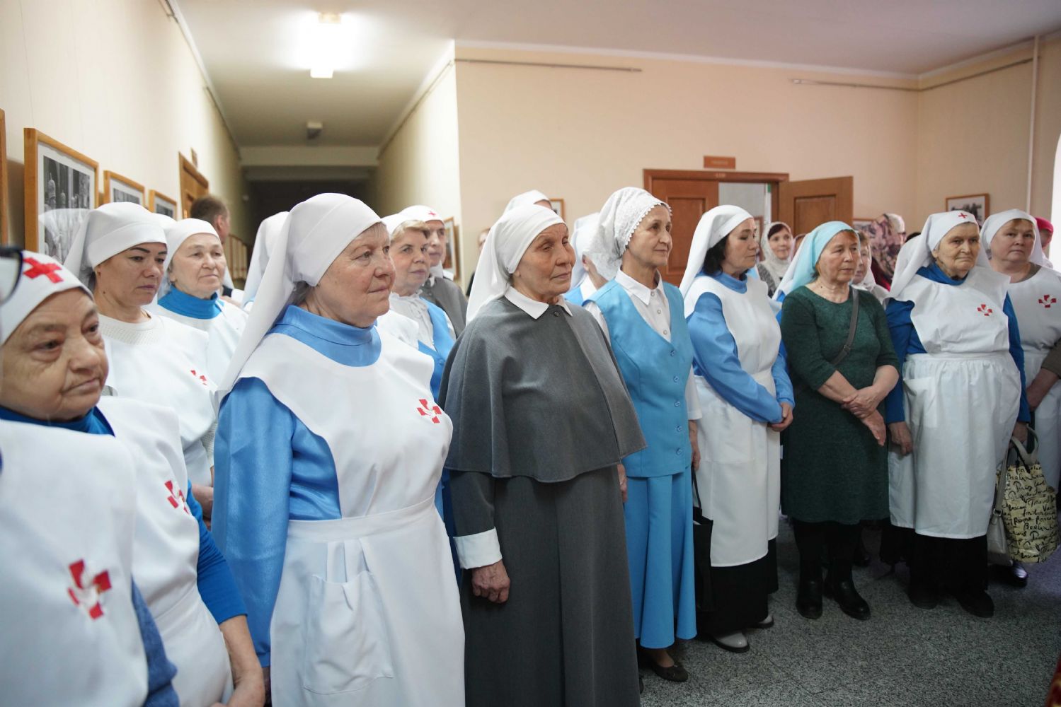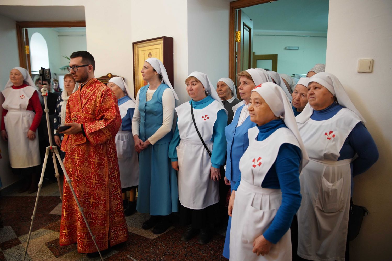 Владыке сослужили ключарь Благовещенского кафедрального собора протоиерей Сергий Поглазов, духовник сестричества иерей Константин Домрачев, руководитель епархиального отдела социального служения и церковной благотворительности иерей Алексий Михеев и протодиакон Михаил Козловский. Песнопения исполнял архиерейский хор «Благовест» под управлением Татьяны Черновой.