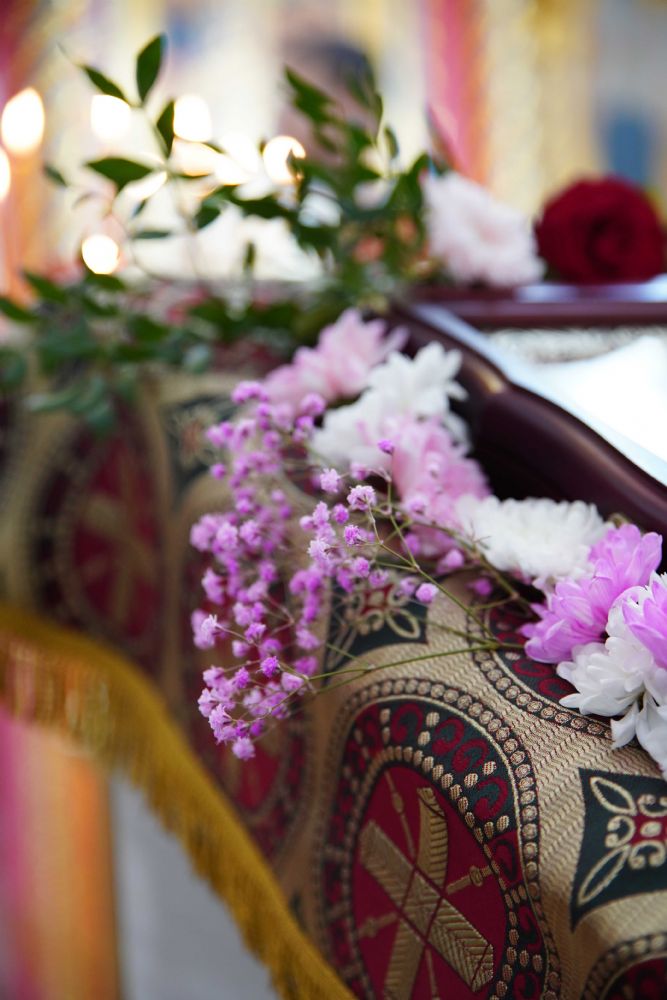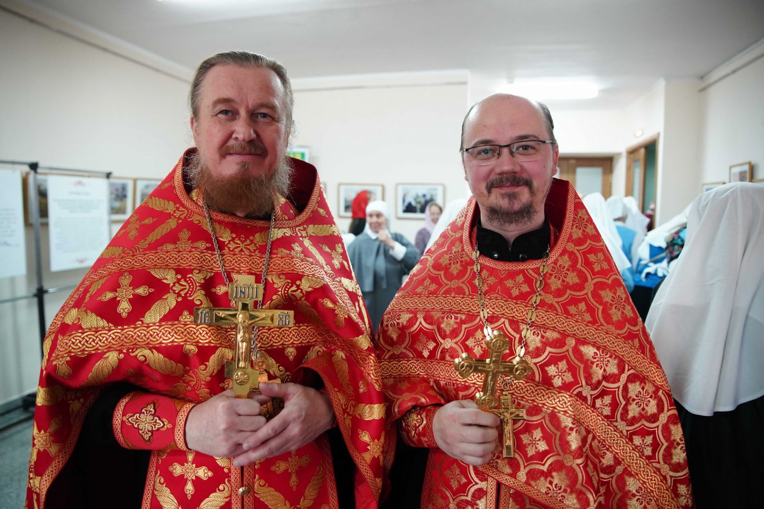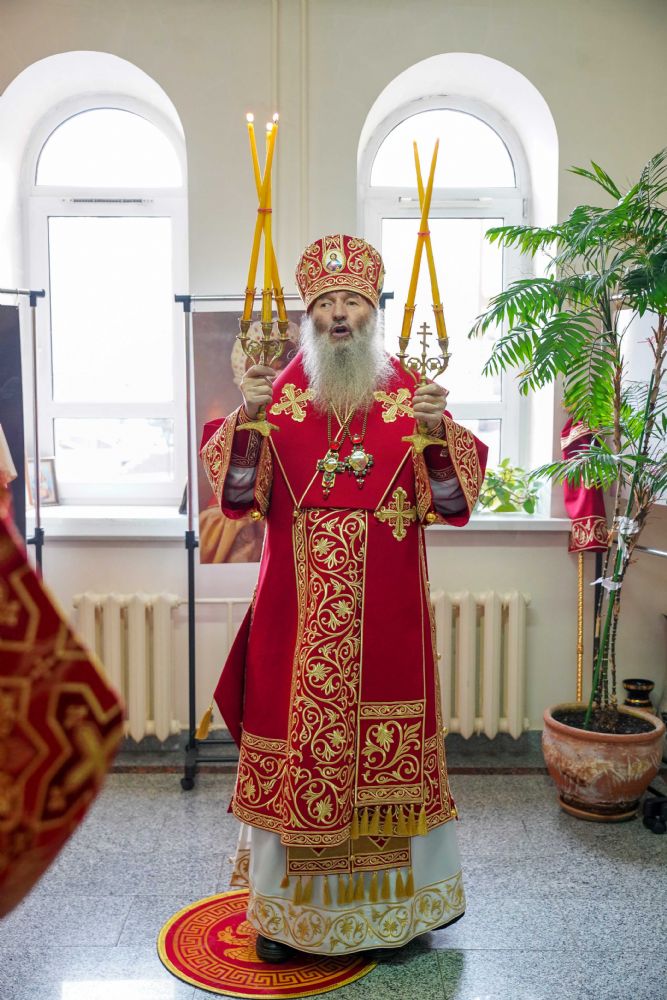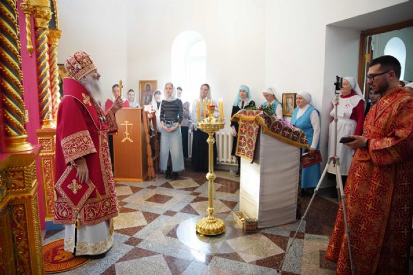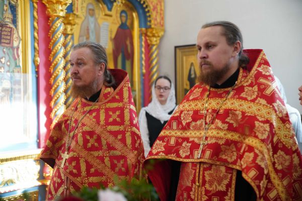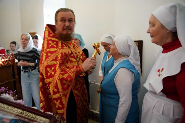 Владыке сослужили ключарь Благовещенского кафедрального собора протоиерей Сергий Поглазов, духовник сестричества иерей Константин Домрачев, руководитель епархиального отдела социального служения и церковной благотворительности иерей Алексий Михеев и протодиакон Михаил Козловский. Песнопения исполнял архиерейский хор «Благовест» под управлением Татьяны Черновой.