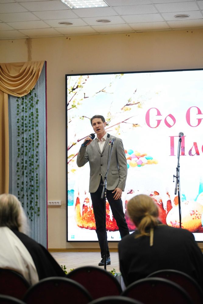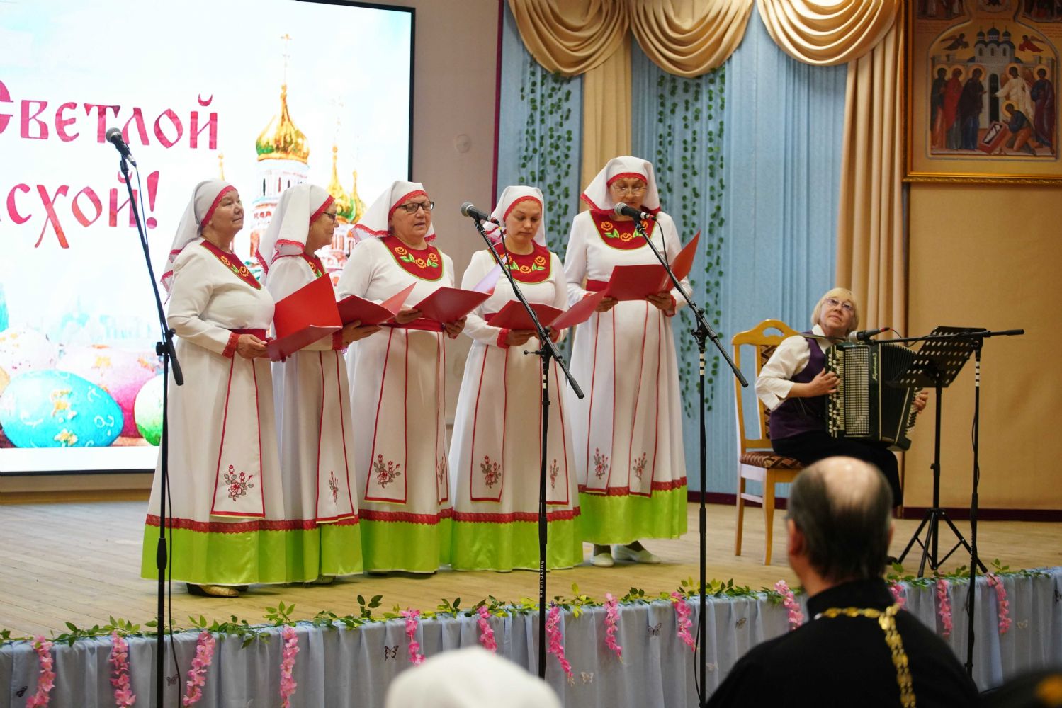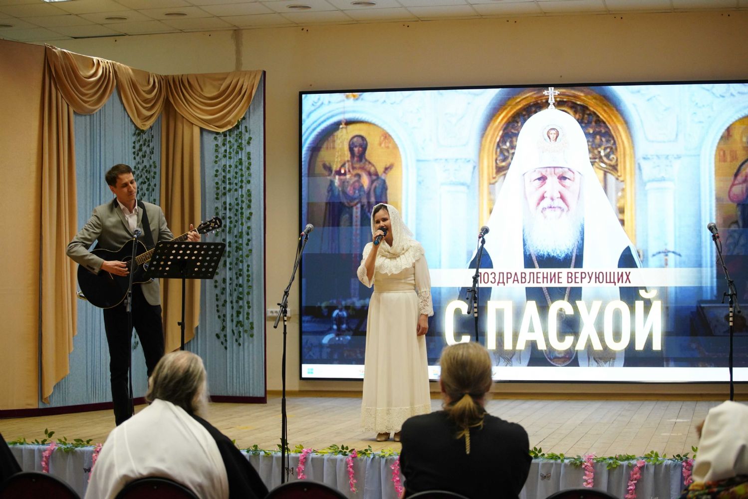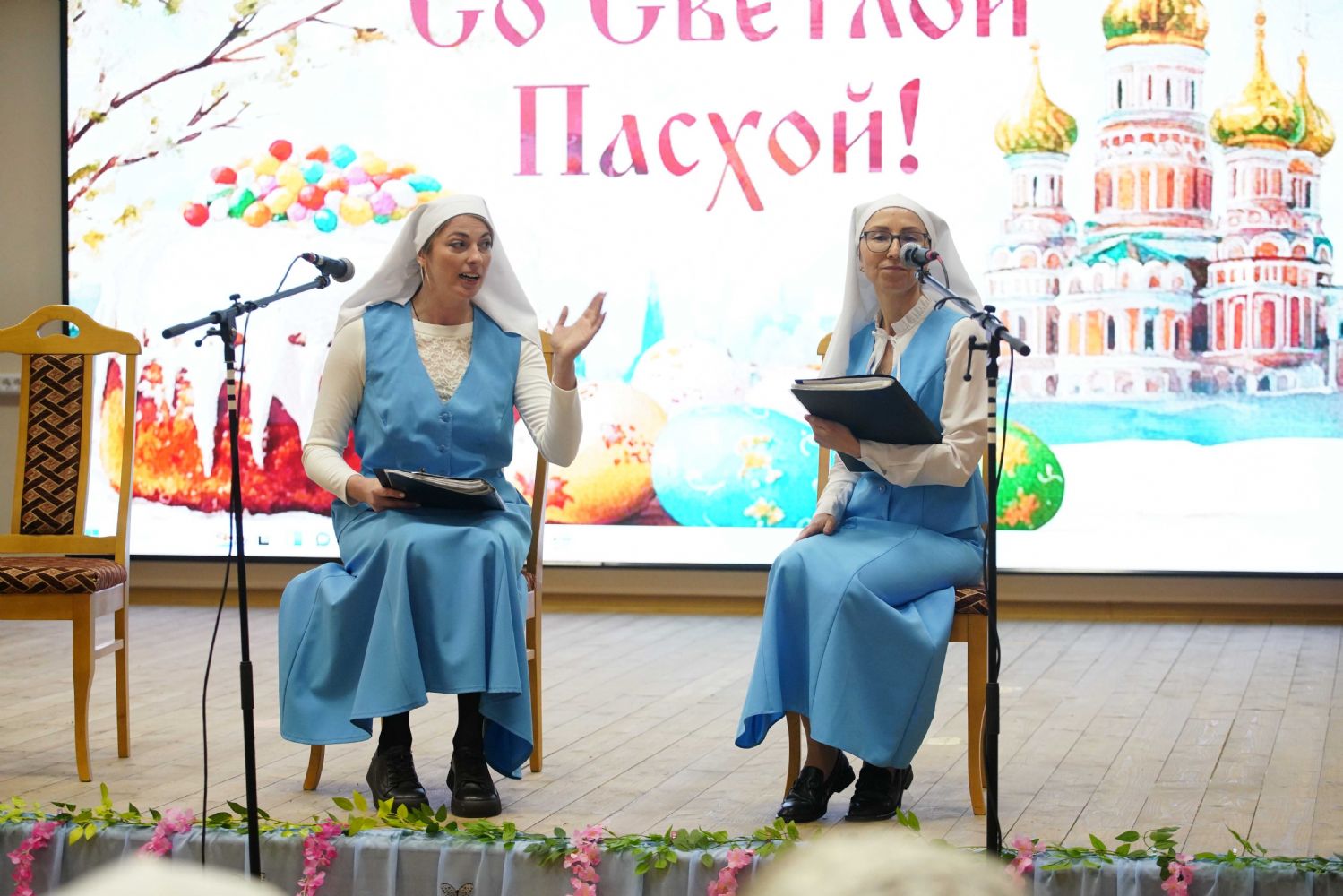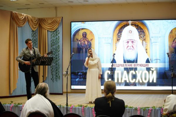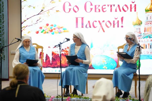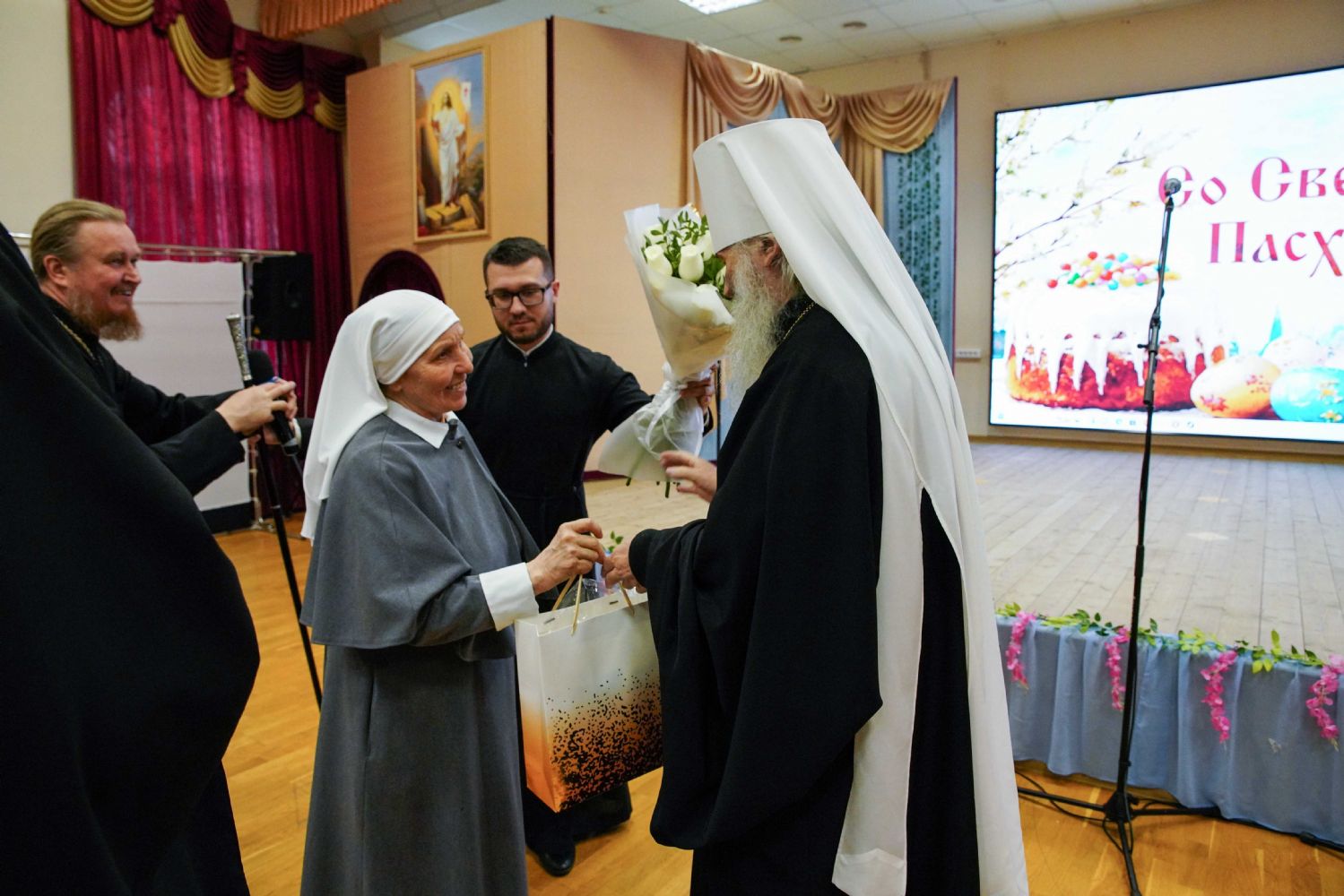 После богослужения владыка со священством посетили традиционный Пасхальный концерт сестер милосердия в актовом зале Православного центра. Своими номерами зрителей порадовали как сами сестры милосердия, так и приглашенные артисты театра им. Шкетана и ТЮЗа.