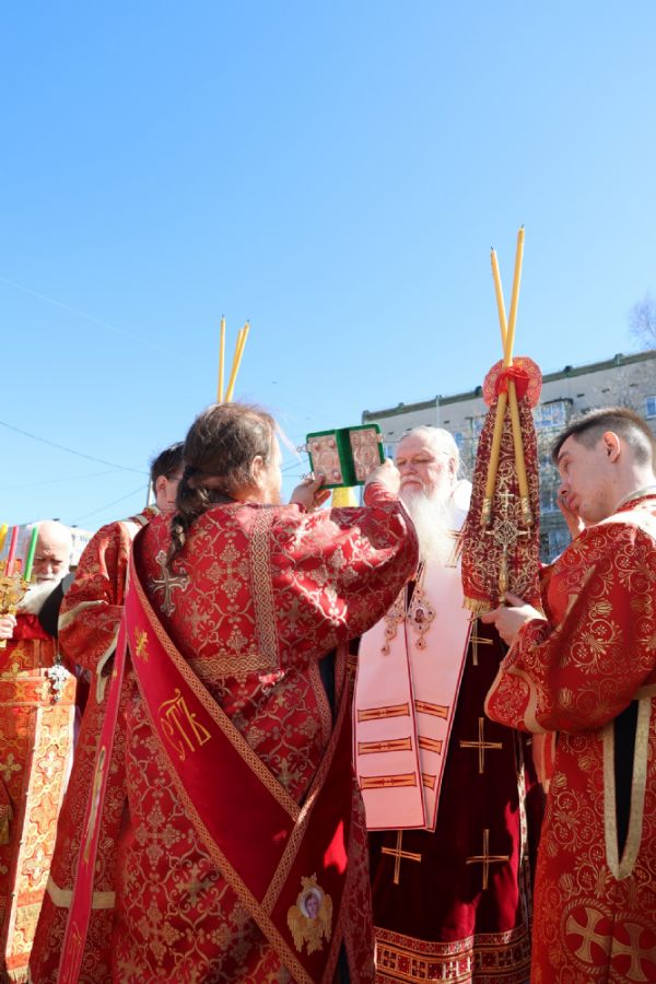 После Литургии прошел пасхальный крестный ход, затем владыка Феофан обратился к верующим с архипастырским словом.