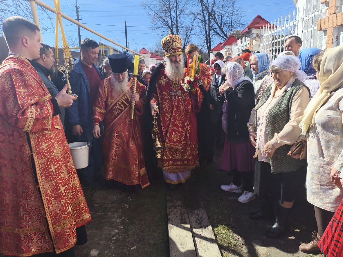 После Литургии прошел крестный ход вокруг храма с чтением Евангелия и кроплением святой водой. Затем владыка обратился к собравшимся с архипастырским словом о пасхальной радости, пробуждающей и оживляющей душу каждого человека.