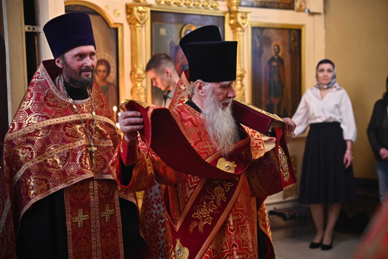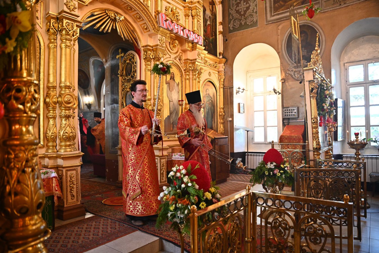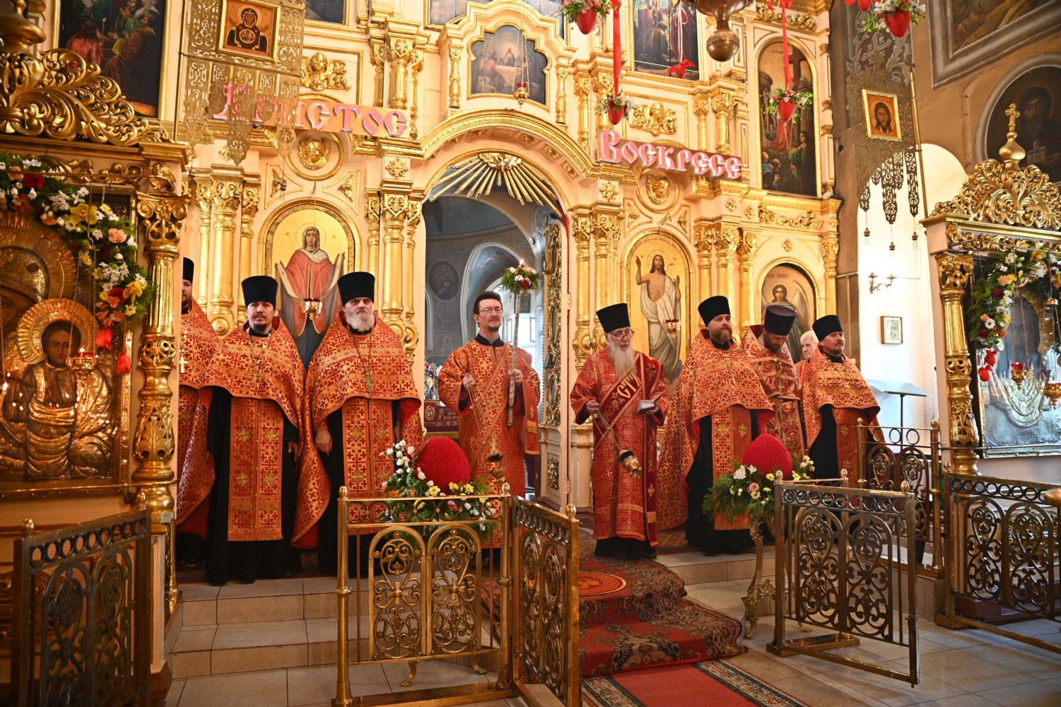 Его Высокопреосвященству сослужили ключарь храма протоиерей Михаил Ильин, клирики храма протоиерей Павел Матвеев, иереи Димитрий Иванов, Сергий Асланов и Павел Дурандин, протодиакон Михаил Козловский и диакон Димитрий Смирнов, а также настоятель Покровского храма с. Мари-Сола протоиерей Сергий Сильдушкин. Пасхальные песнопения исполнял хор храма под управлением Ирины Лебедевой.