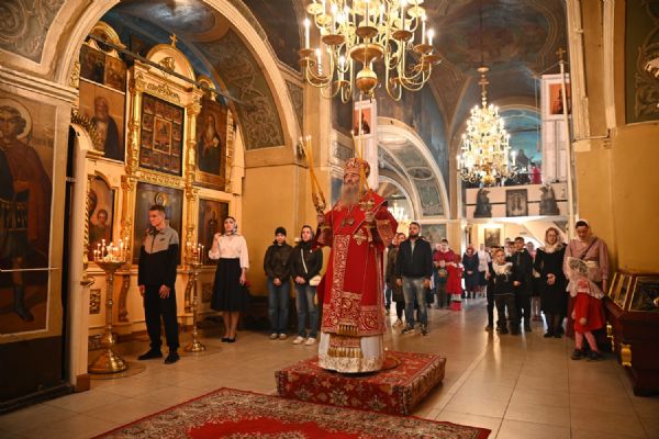 Вечером Светлого четверга, 16 апреля, митрополит Иоанн возглавил пасхальную вечерню в храме Рождества Пресвятой Богородицы с. Семеновка.
