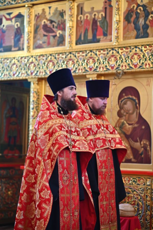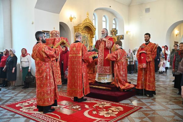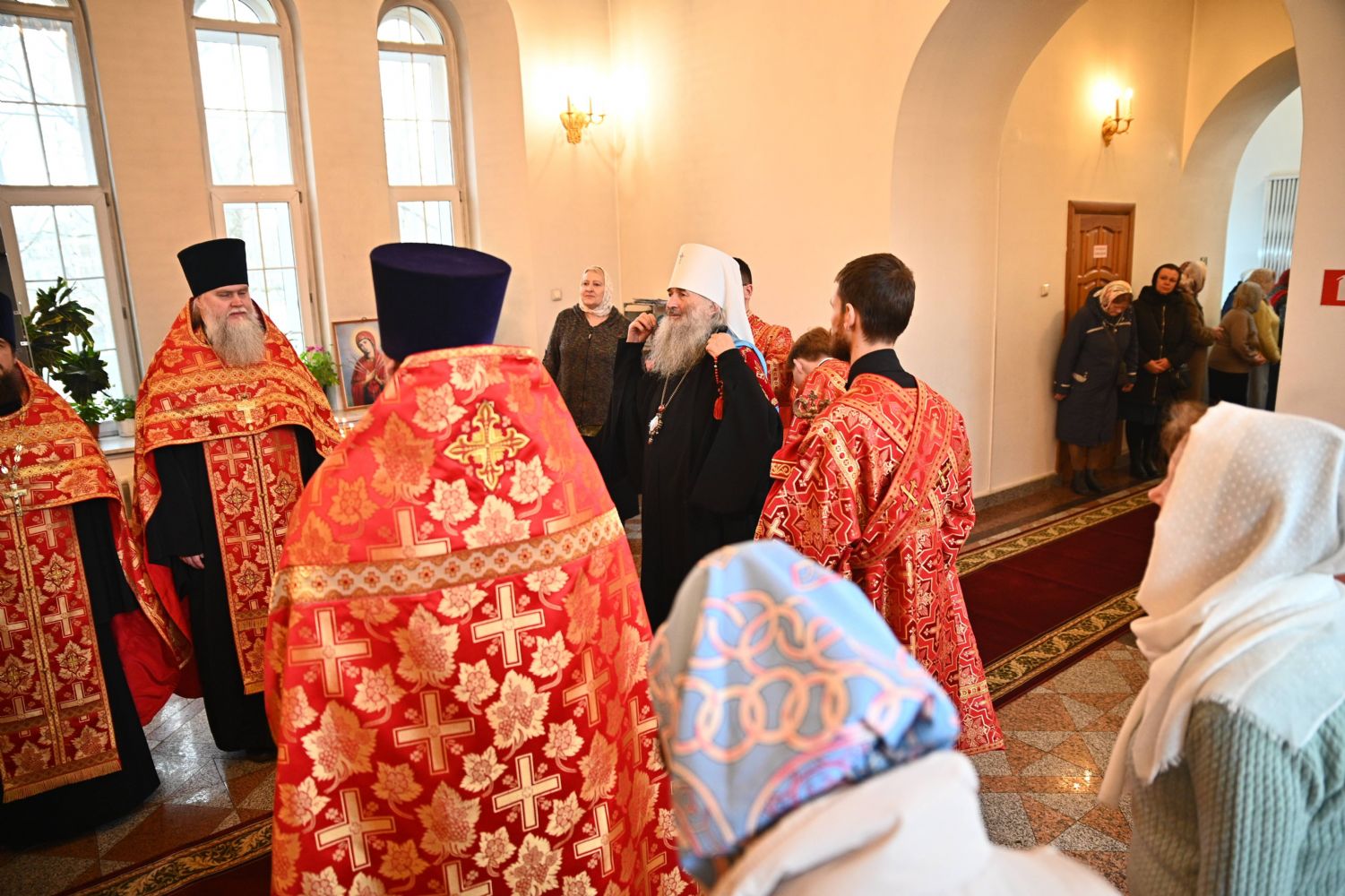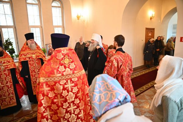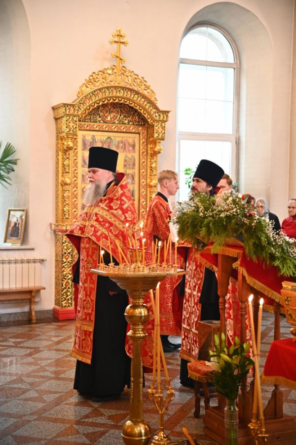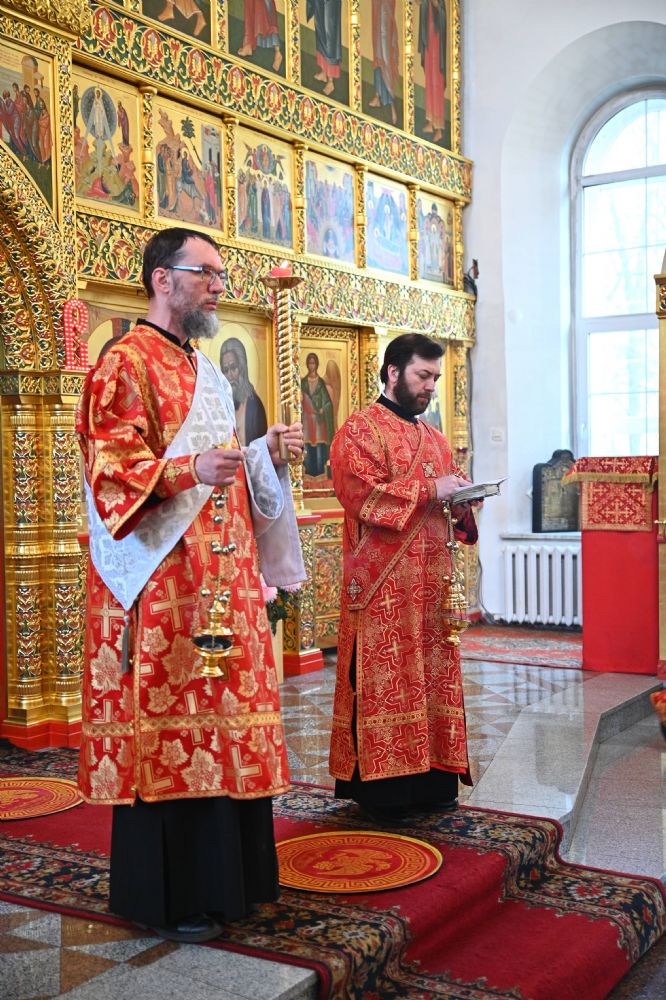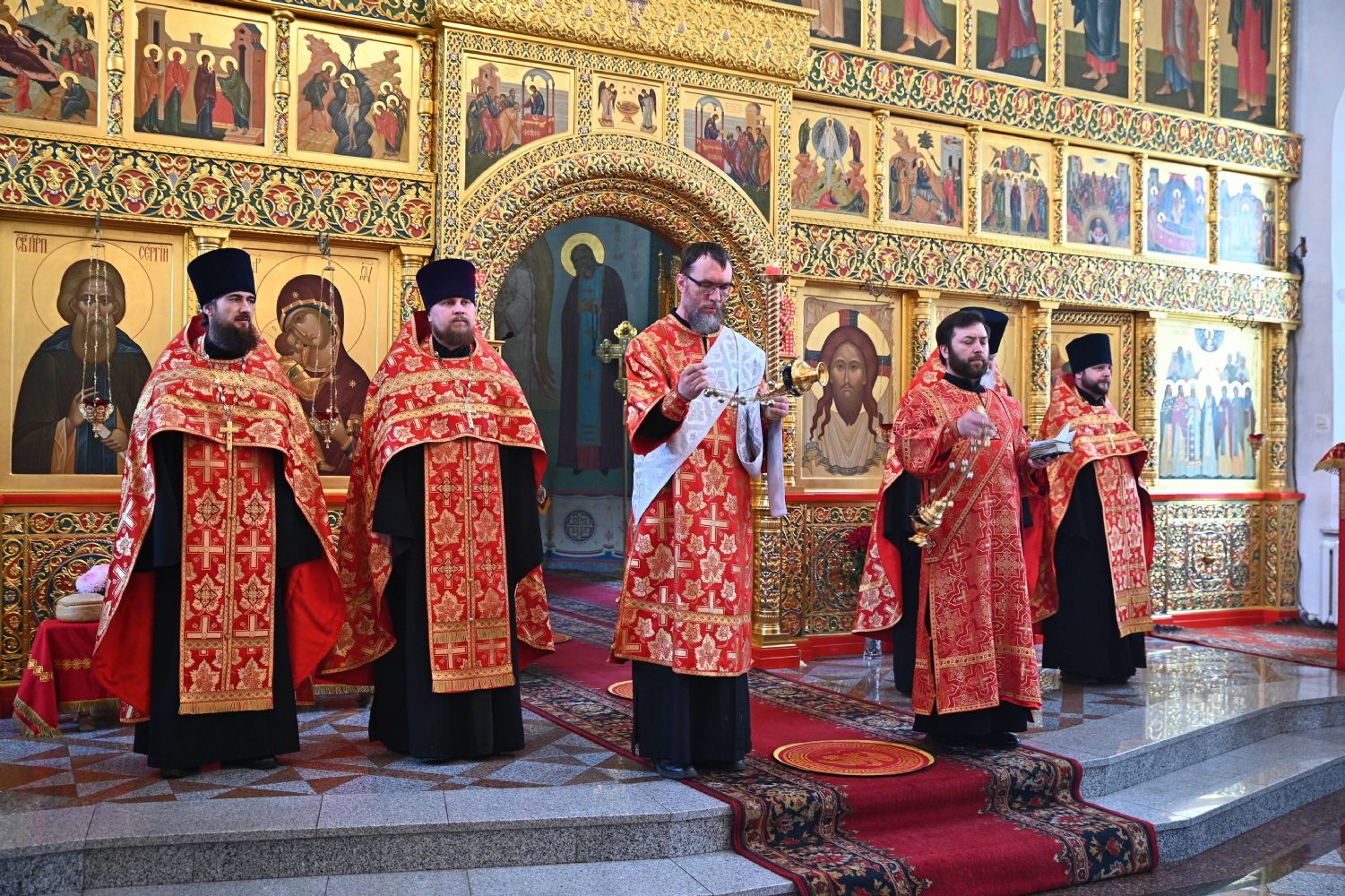 Его Высокопреосвященству сослужили настоятель храма протоиерей Александр Бачурин, клирики храма иереи Константин Домрачев, Виктор Умрихин, Николай Бабич и диакон Алексий Ершов, а также клирик Благовещенского кафедрального собора диакон Артемий Бобоч. Пел хор храма под управлением регента Елены Умрихиной.