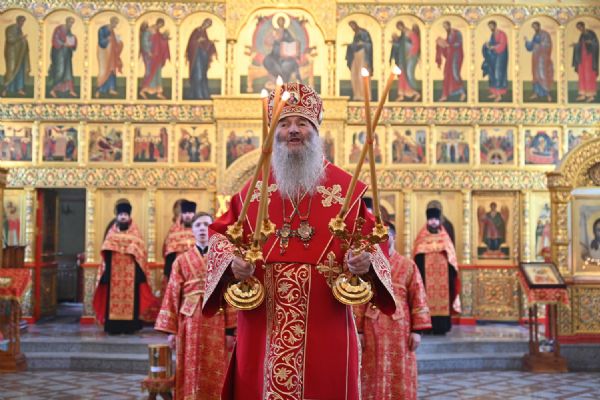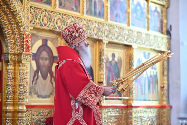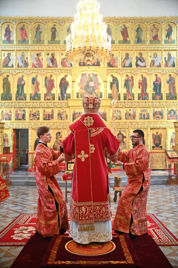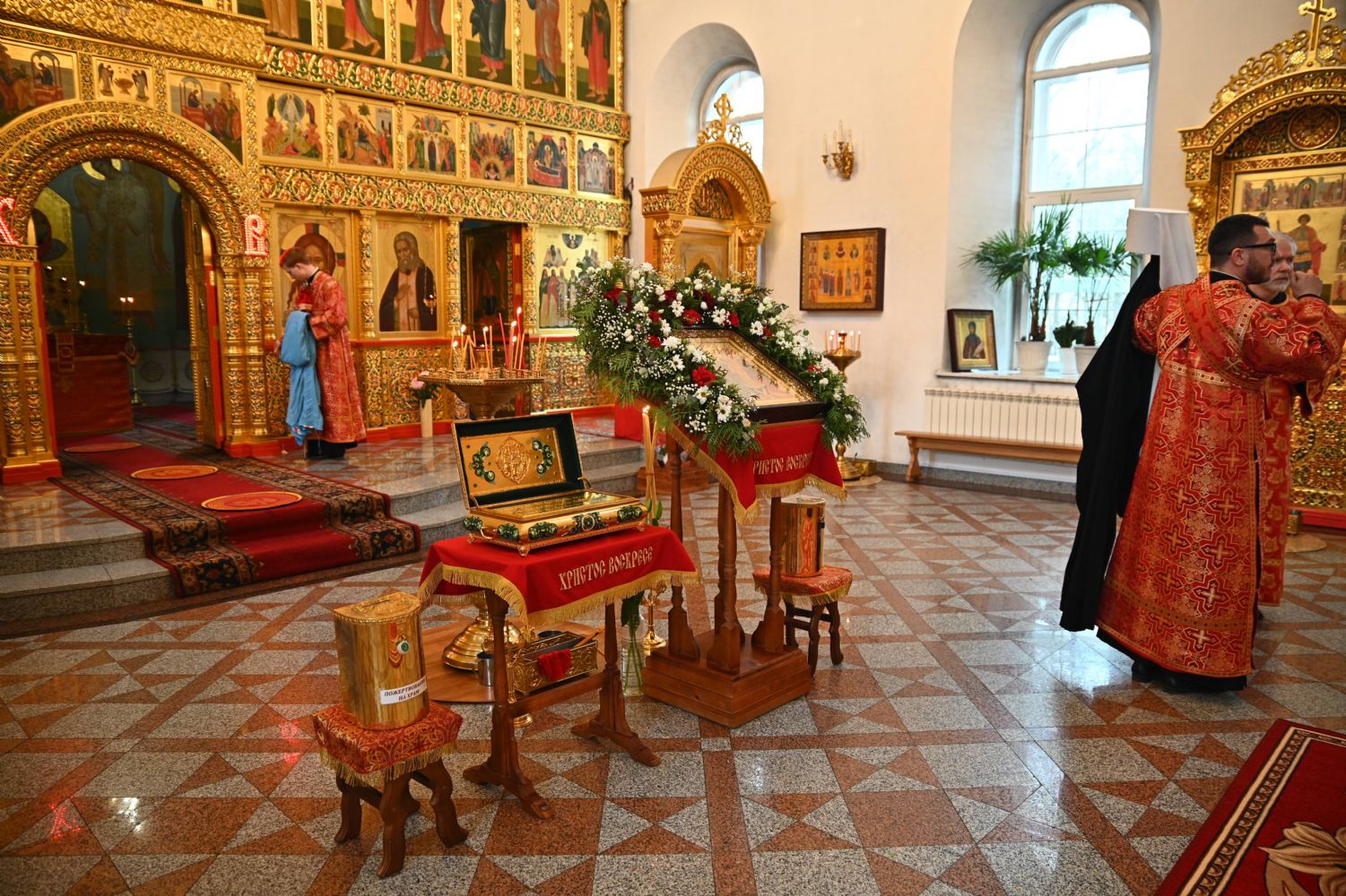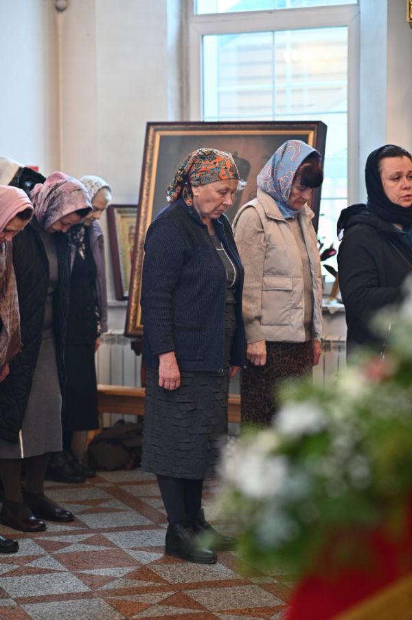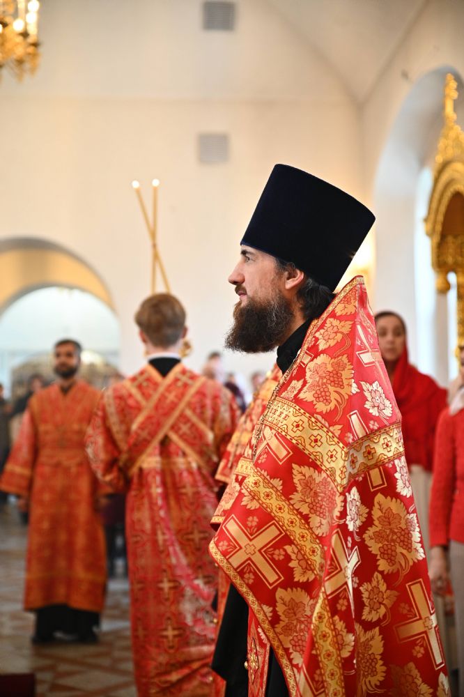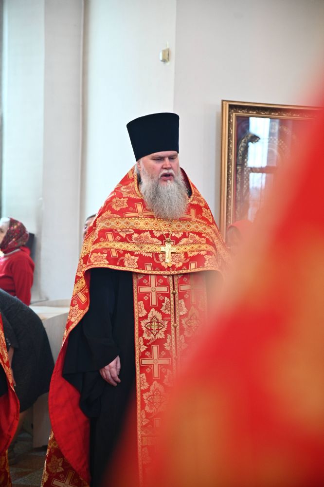 Его Высокопреосвященству сослужили настоятель храма протоиерей Александр Бачурин, клирики храма иереи Константин Домрачев, Виктор Умрихин, Николай Бабич и диакон Алексий Ершов, а также клирик Благовещенского кафедрального собора диакон Артемий Бобоч. Пел хор храма под управлением регента Елены Умрихиной.