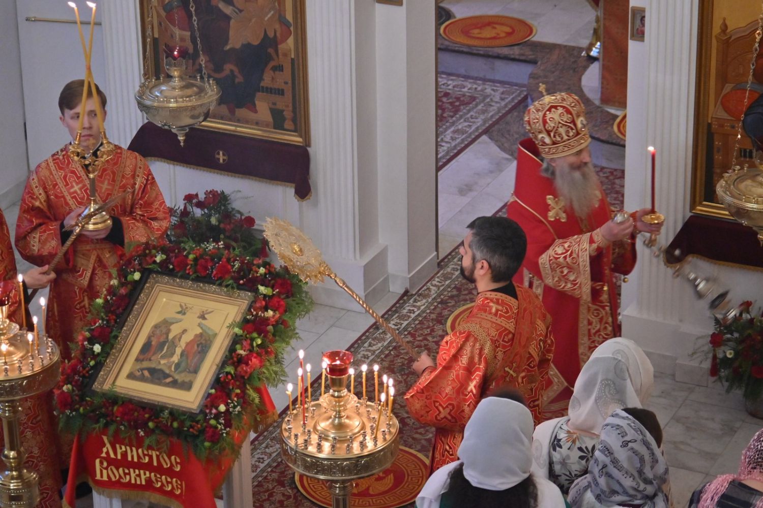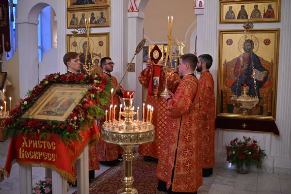 Перед всенощным бдением была совершена служба пасхального часа и закрыты Царские врата, остававшиеся открытыми всю Светлую седмицу.
