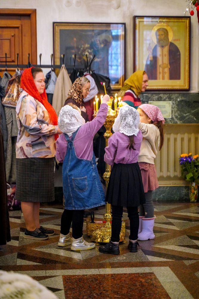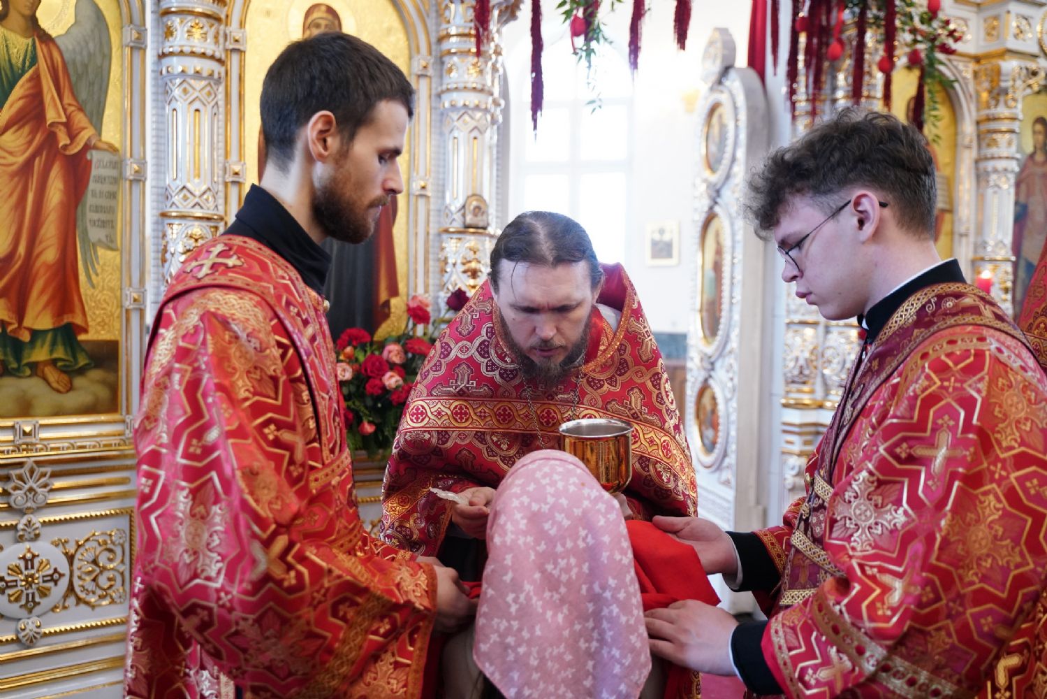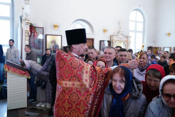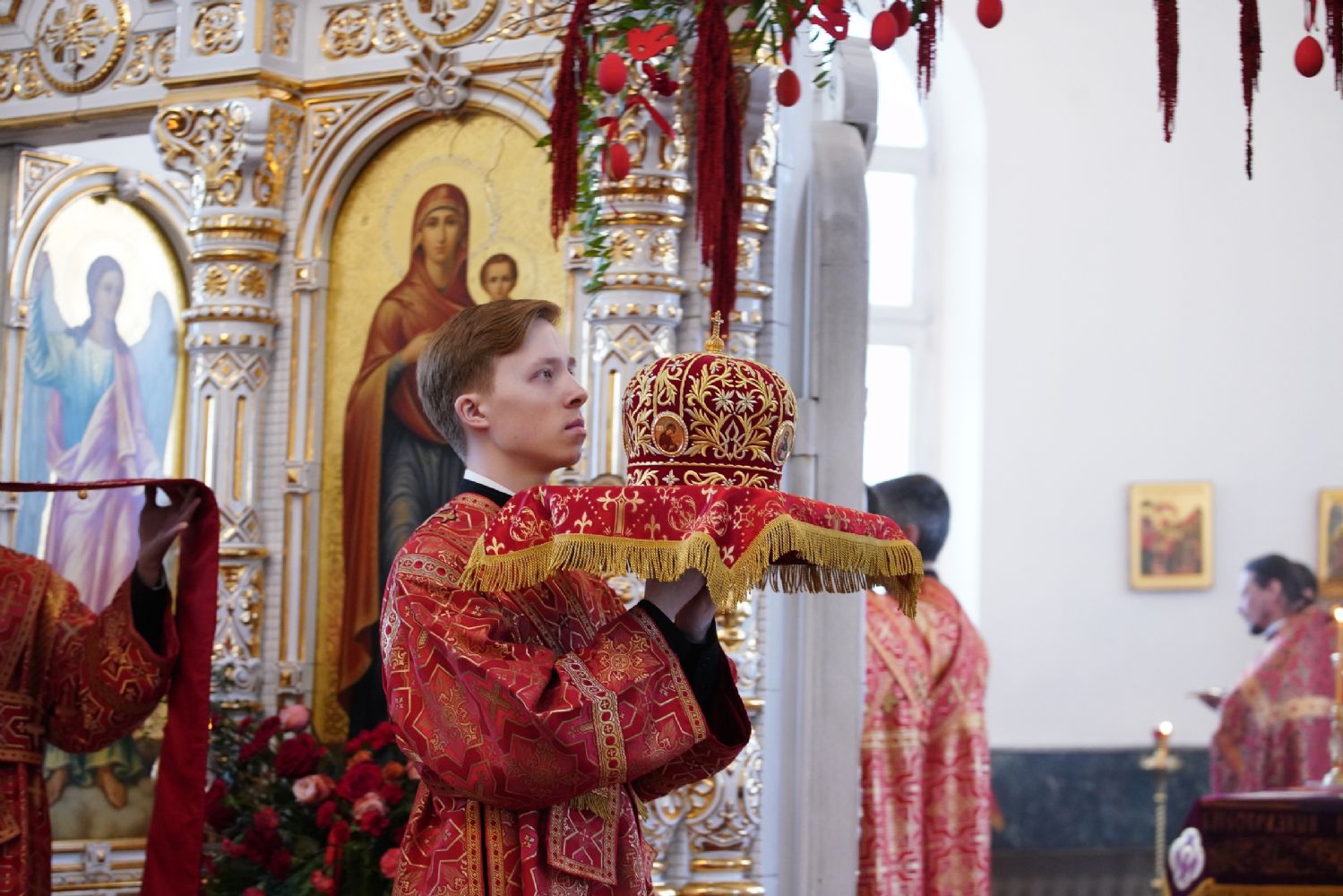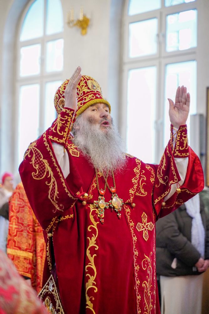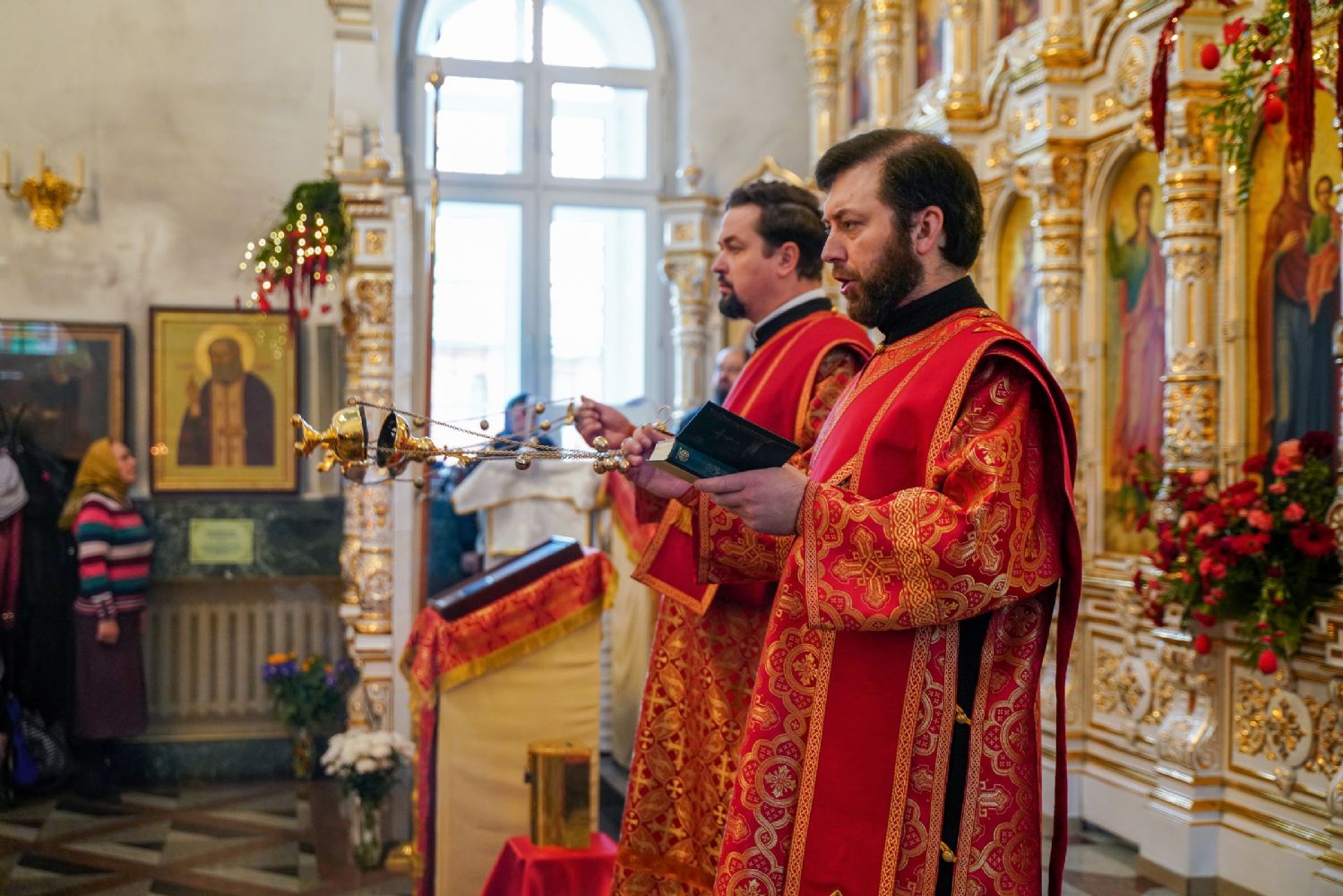Владыке сослужили настоятель собора иерей Андрей Кочаков, клирики собора иерей Димитрий Лукьянов и диакон Алексий Кузнецов, а также клирик Благовещенского кафедрального собора диакон Артемий Бобоч. Песнопения исполнял хор собора под управлением Алисы Вылекжаниной.