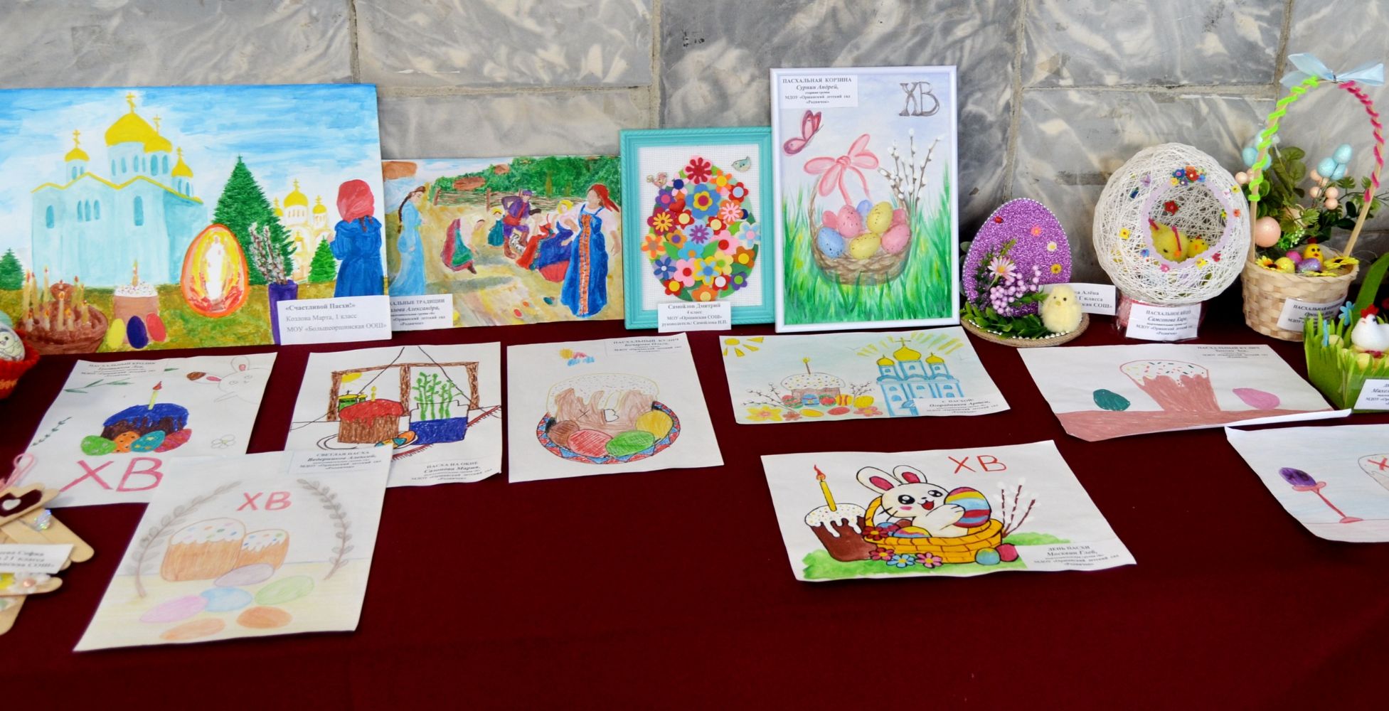 После праздничной Литургии в храме Рождества Иоанна Предтечи все желающие собрались в районном Центре культуры и досуга. В фойе была организована выставка детских творческих работ на пасхальную тему. Настроение посетителям создавали участники объединения «Аниматоры» Центра детского творчества им. Г.С. Чесноковой.