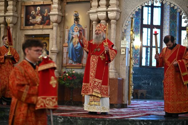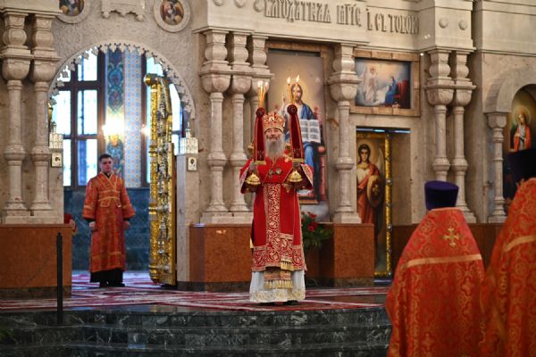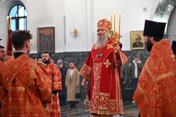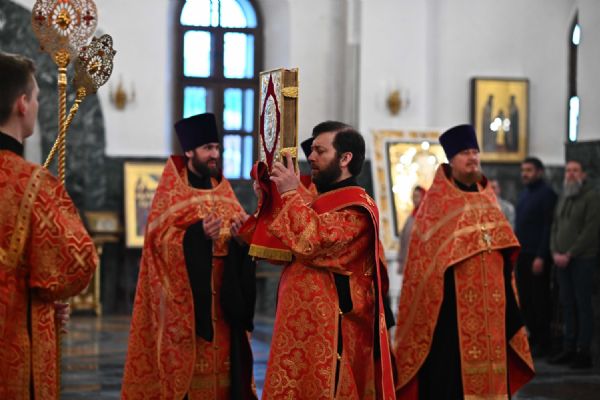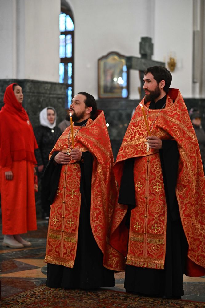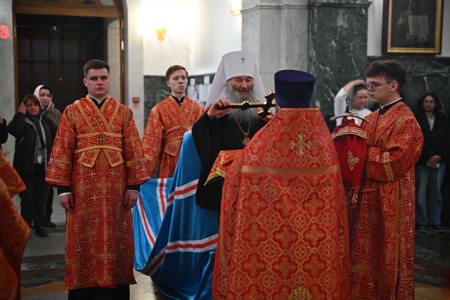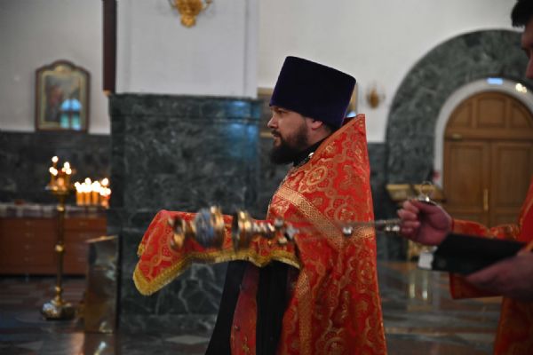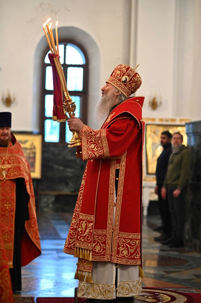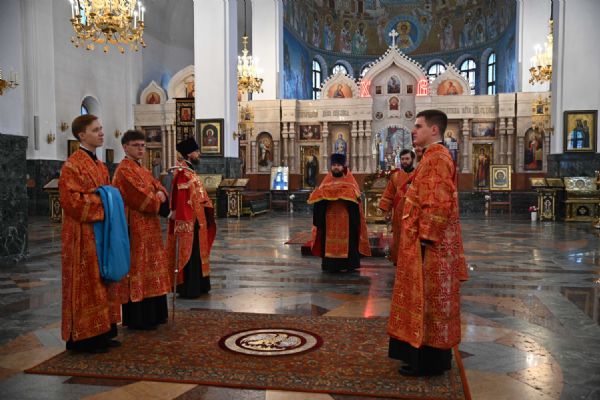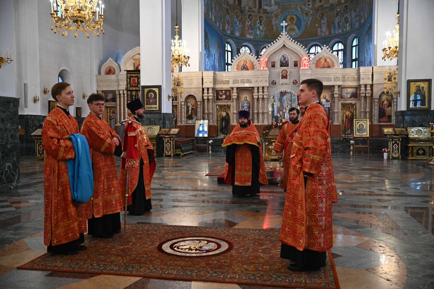 Владыке сослужили ключарь кафедрального собора протоиерей Сергий Поглазов, клирики собора иереи Никифор Захаров, Евгений Самойлов, Иоанн Милютин и диакон Артемий Бобоч. Песнопения исполнял архиерейский хор «Благовест» под управлением регента Татьяны Черновой.