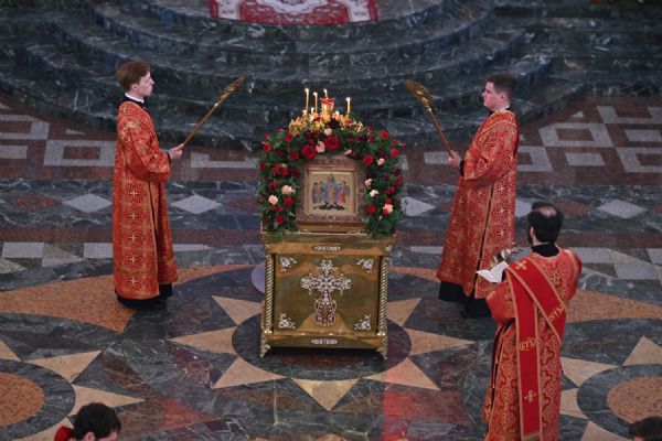 Митрополит Иоанн возглавил вечерню с акафистом в Благовещенском соборе 99