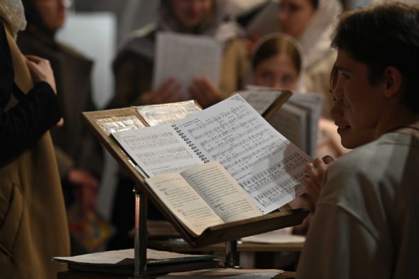 Припевом акафиста Воскресению Христову является тропарь Пасхи: «Христос воскресе из мертвых, смертию смерть поправ...» – он звучал на разных языках в ознаменование того, что Христос принес спасение людям всех народов земли.