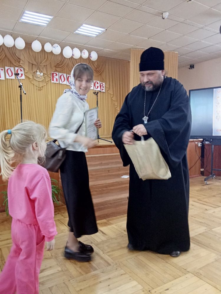 По окончании фестиваля всем участникам были вручены сертификаты, а дети из рук благочинного Козьмодемьянского церковного округа получили еще и пасхальные гостинцы. Кроме того, вниманию гостей и участников фестиваля были представлены творческие выставки рисунков и поделок, выполненных воспитанниками детских садов, учащимися воскресных и общеобразовательных школ города и района. По сложившейся традиции, Центральной городской библиотекой была организована выставка детских книг и журналов на тему православия и праздника Пасхи.