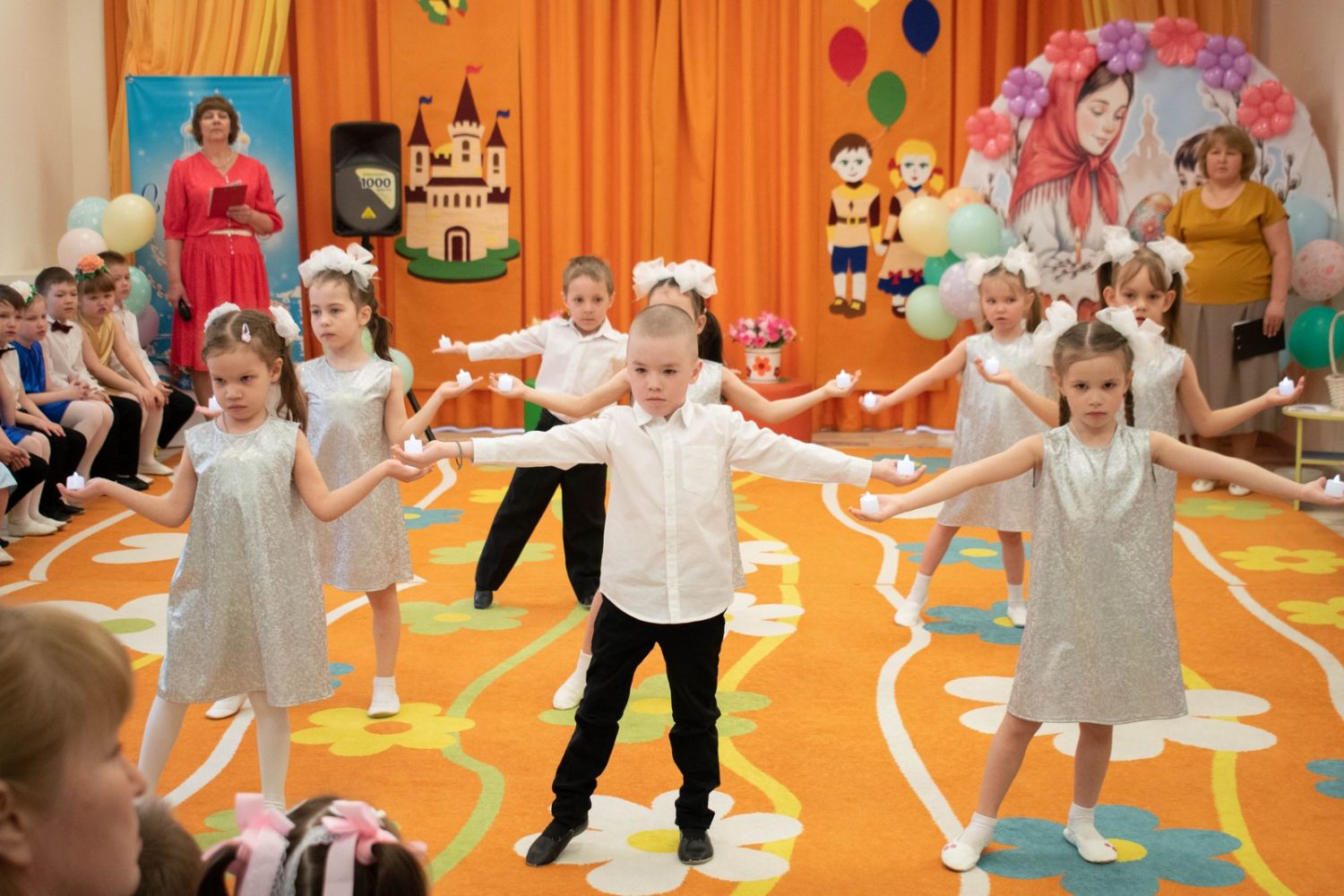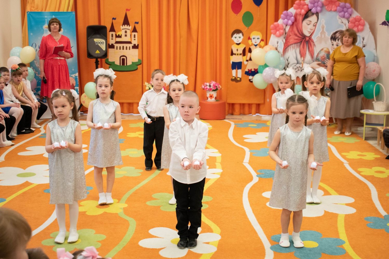 Воспитанники детского сада приготовили для гостей праздничный концерт – песни, танцы, стихи, а также мини-сценки на пасхальную тематику.