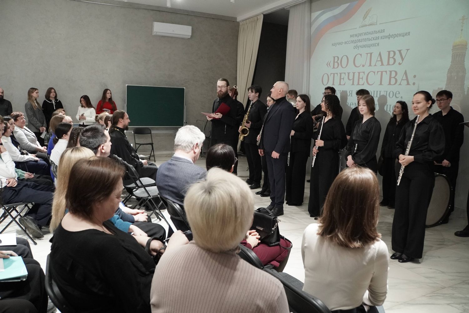 Пленарное заседание открыл Гимн Российской Федерации в исполнении Образцового духового оркестра Марийского республиканского колледжа культуры и искусств имени И.С. Палантая (руководитель и дирижер – заслуженный работник культуры РМЭ Александр Майков). В адрес участников конференции прозвучало видеообращение митрополита Йошкар-Олинского и Марийского Иоанна. С приветственными словами к собравшимся обратились заместитель директора Художественного училища Олеся Орлова и доктор исторических наук, профессор МарГУ Александр Бахтин. Музыкальным оформлением пленарной части стали выступления ансамбля детско-юношеского хора «Благовест» (регент – Татьяна Чернова), исполнившего духовные канты «Русь называют святою», «Есть в далекой земле...» и стихиру «Земле Русская».